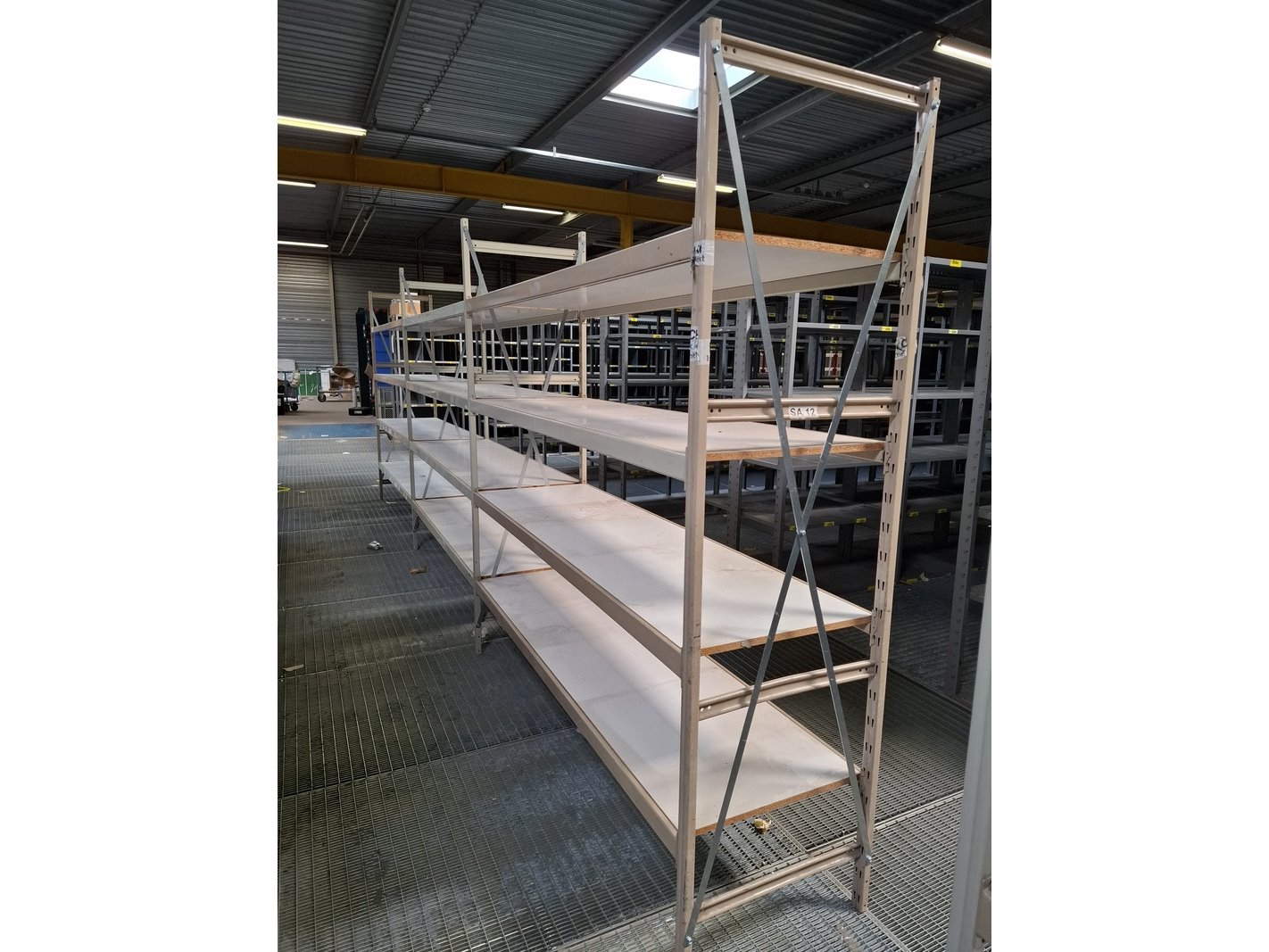 Product: Partij stellingen Specificaties: lxbxh ca 60mtr (waarvan 54m dubbelzijdig) x215x100cm, 1st enkelzijdig 600x215x50cm, 1 losse stelling 600x60cmx210cm.