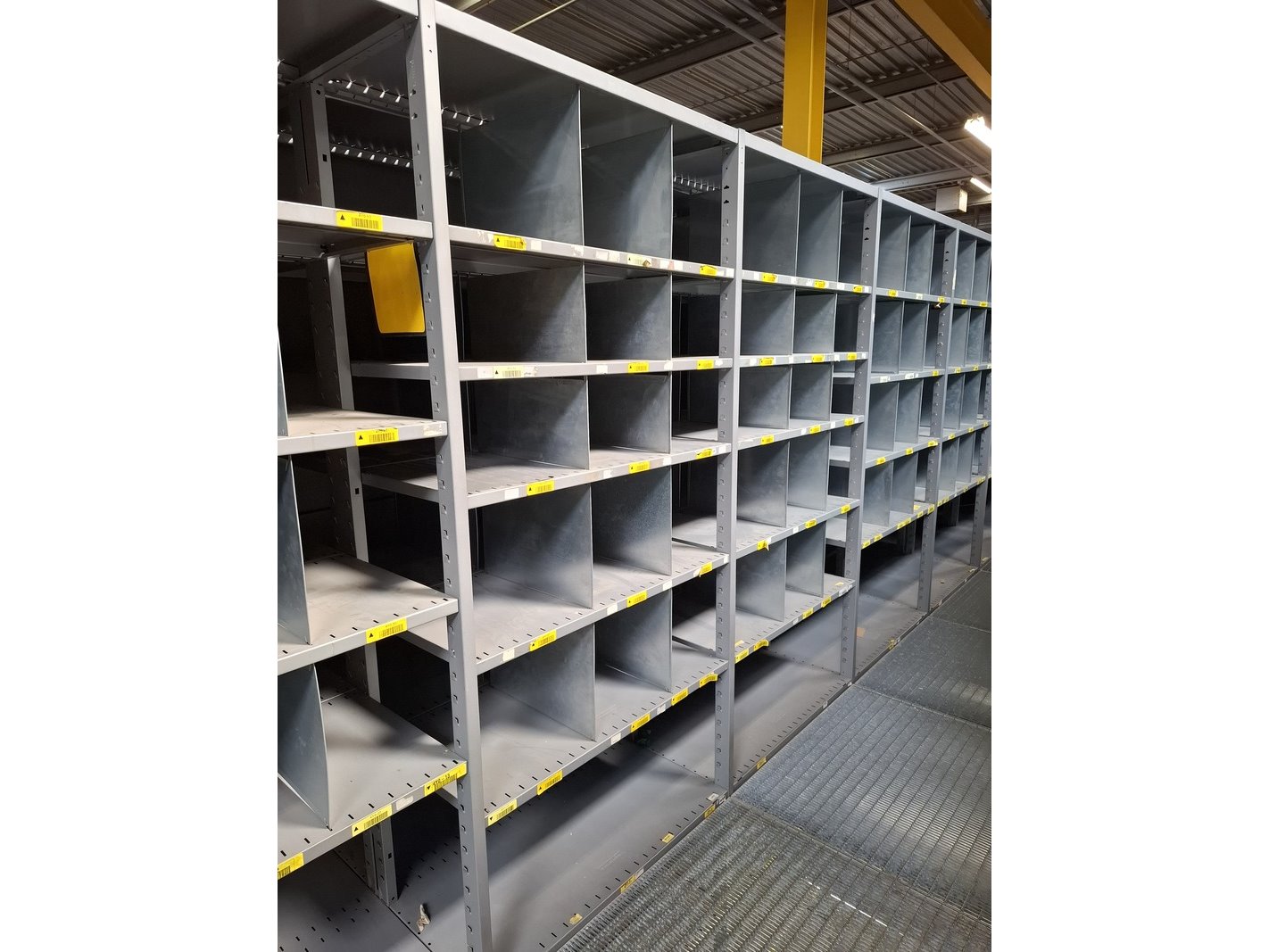 Product: Partij stellingen Specificaties: lxbxh ca 69mtr (waarvan 54m dubbelzijdig x 215cm x 100cm), losse stelling dubbelzijdig 200x 215x100cm, 1 stuks enkelzijdig 200x215x50cm, 1 stuks stelling 600x215x100cm met vakverdeling, 1st losse stelling 600x210x60cm