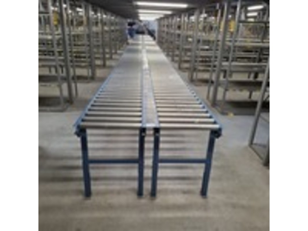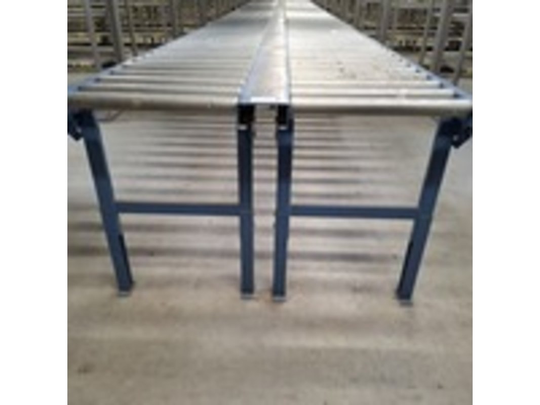 Product: Rollerbaan Materiaal: metaal Afmeting: lxbxh ca 19x1,2x0,85mtr Specificaties: in hoogte verstelbaar