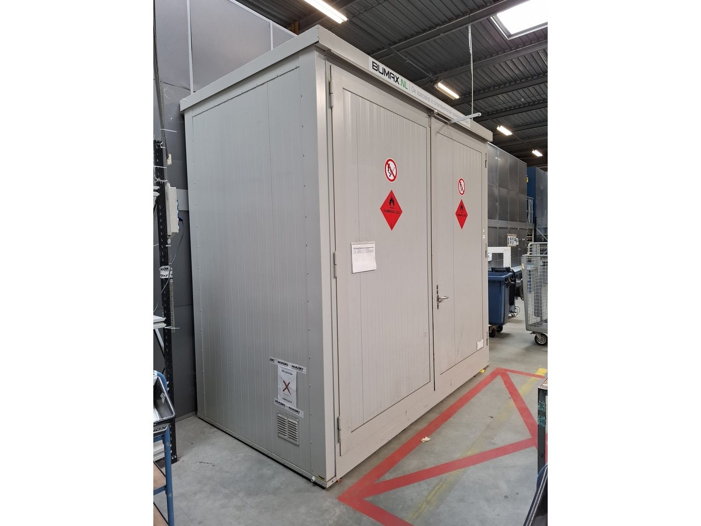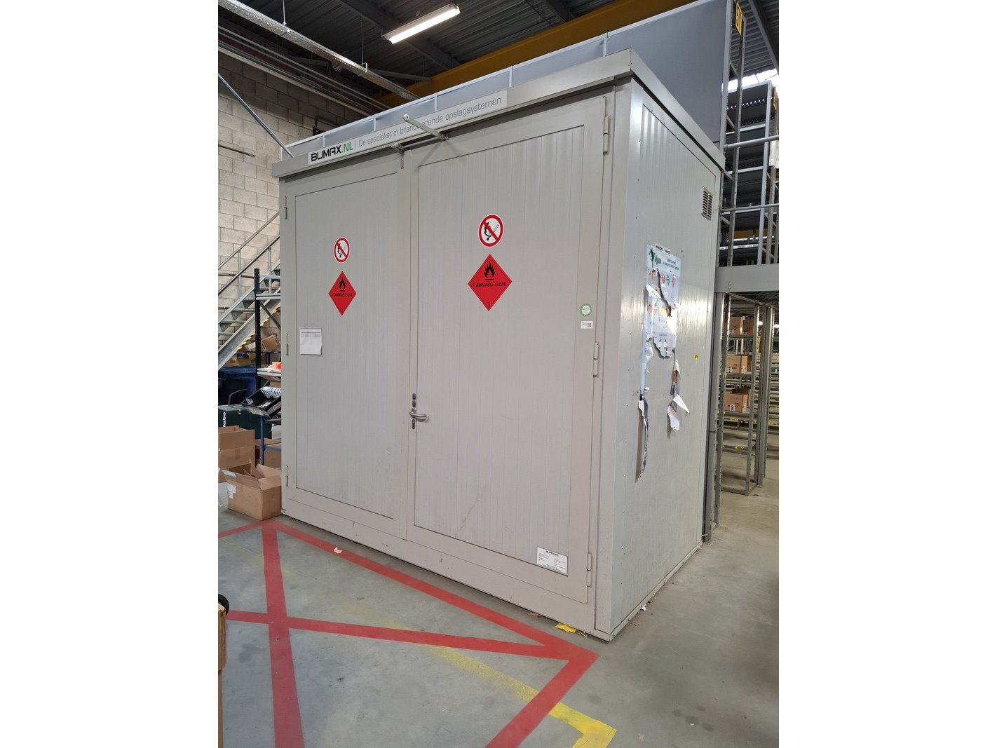 Merk: Bumax Product: Gevaarlijke stoffenkast Afmeting: hxbxd ca 310x321x175cm BouwJaar: 2018