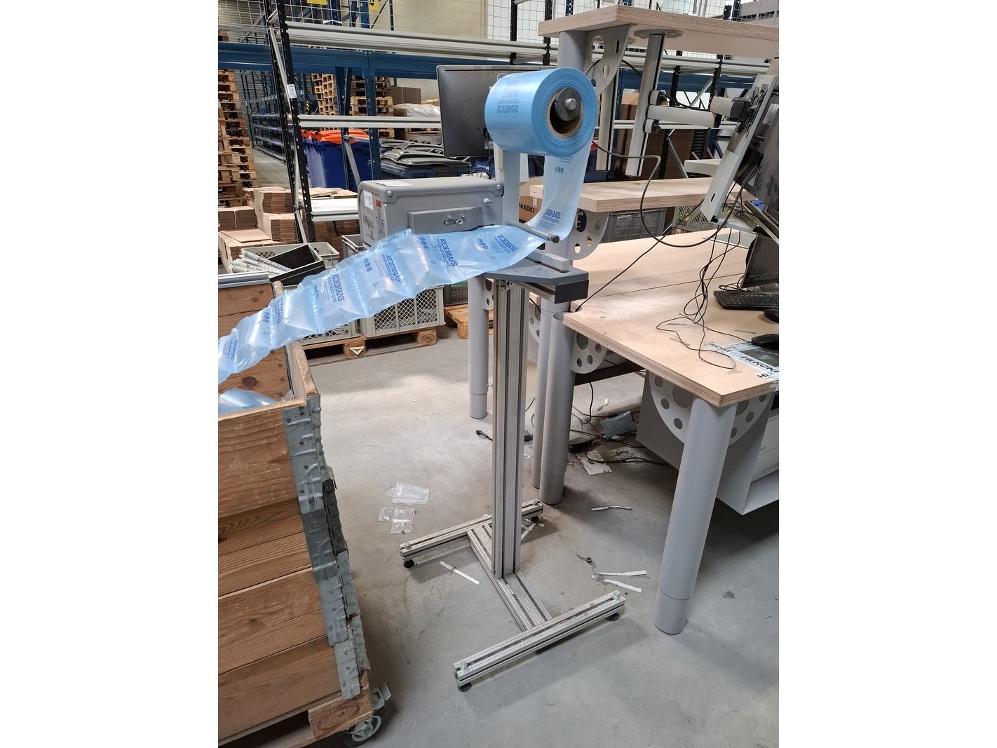 Merk: stororpack Product: Luchtkussenmachine Specificaties: 230V incl palletbox luchtkussenfolie en 28 rol nieuwe luchtkussenfolie
