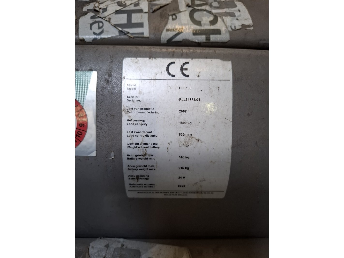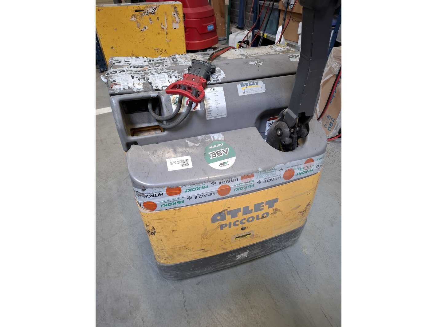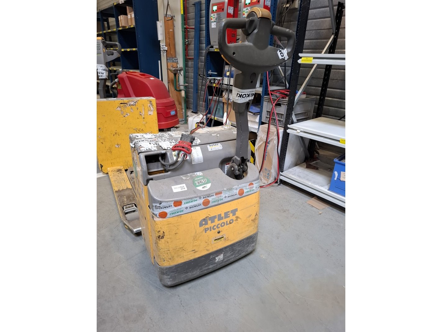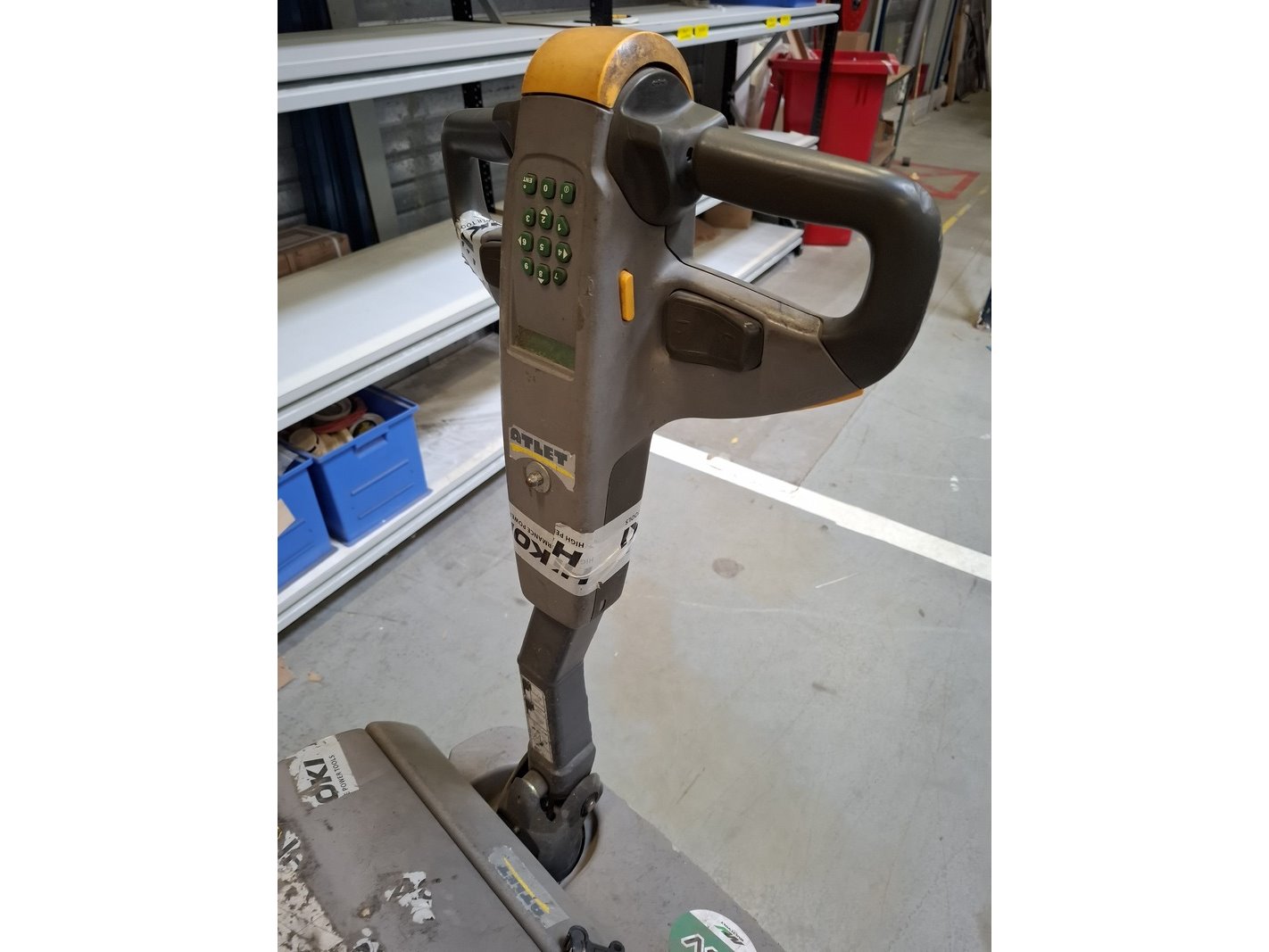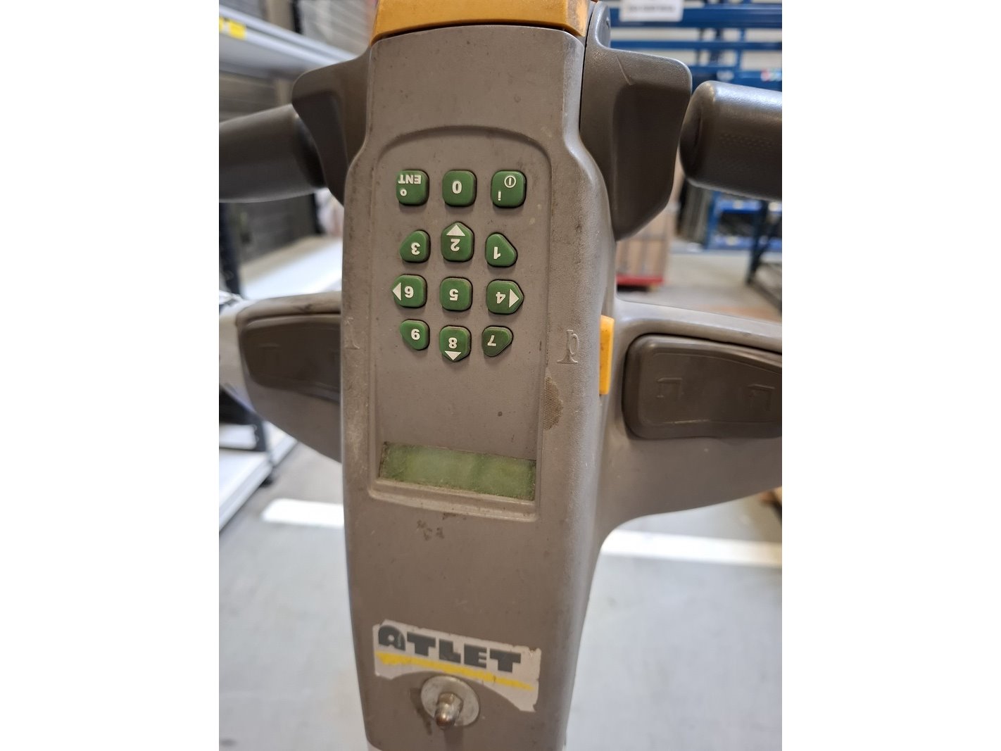 Merk: Atlet Product: Elektrische pompwagen met lader BouwJaar: 2008 Specificaties: Max. hefvermogen 1800kg, 24V, lepellengte 118cm