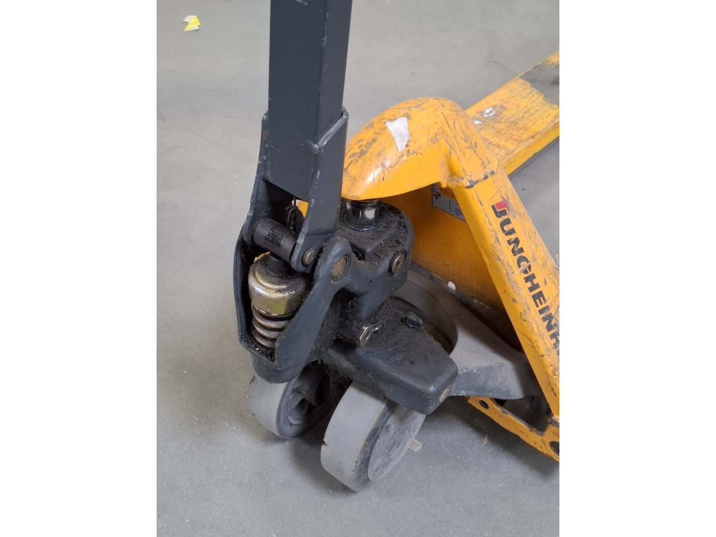 Merk: Jungheinrich Product: Palletwagen BouwJaar: 2002 Specificaties: lepellengte 112cm, max 2000kg