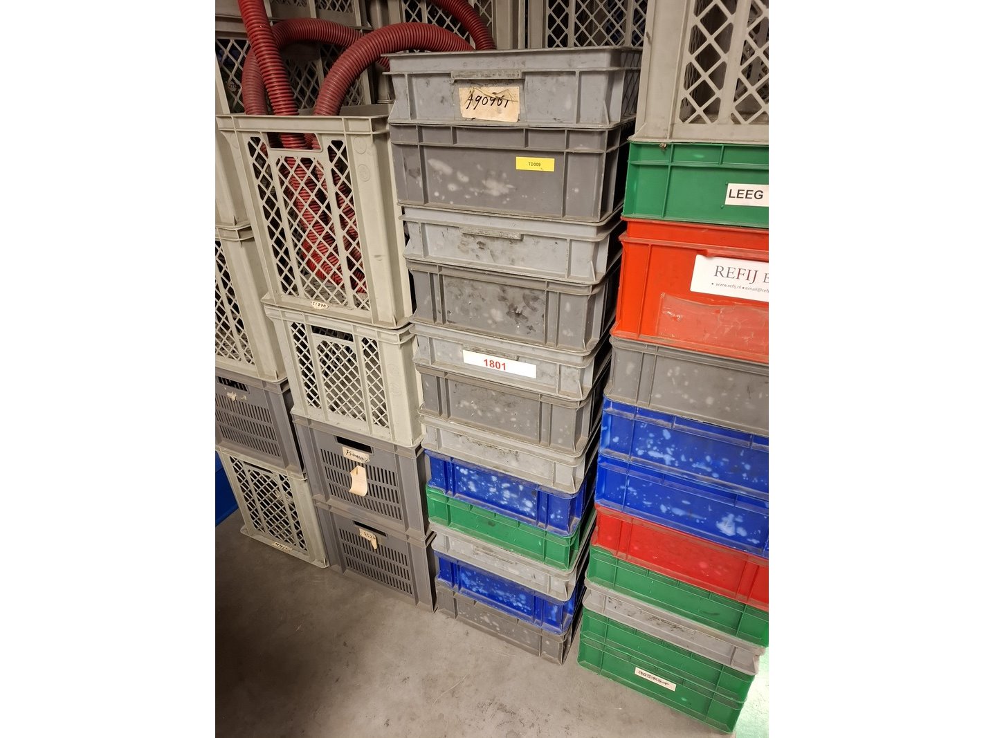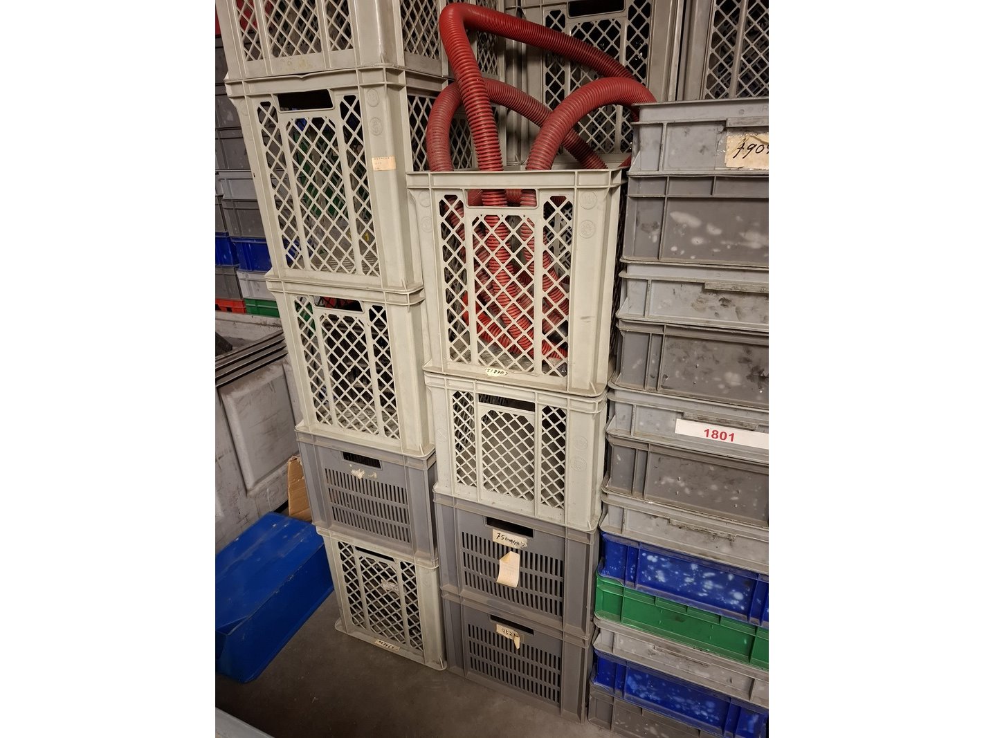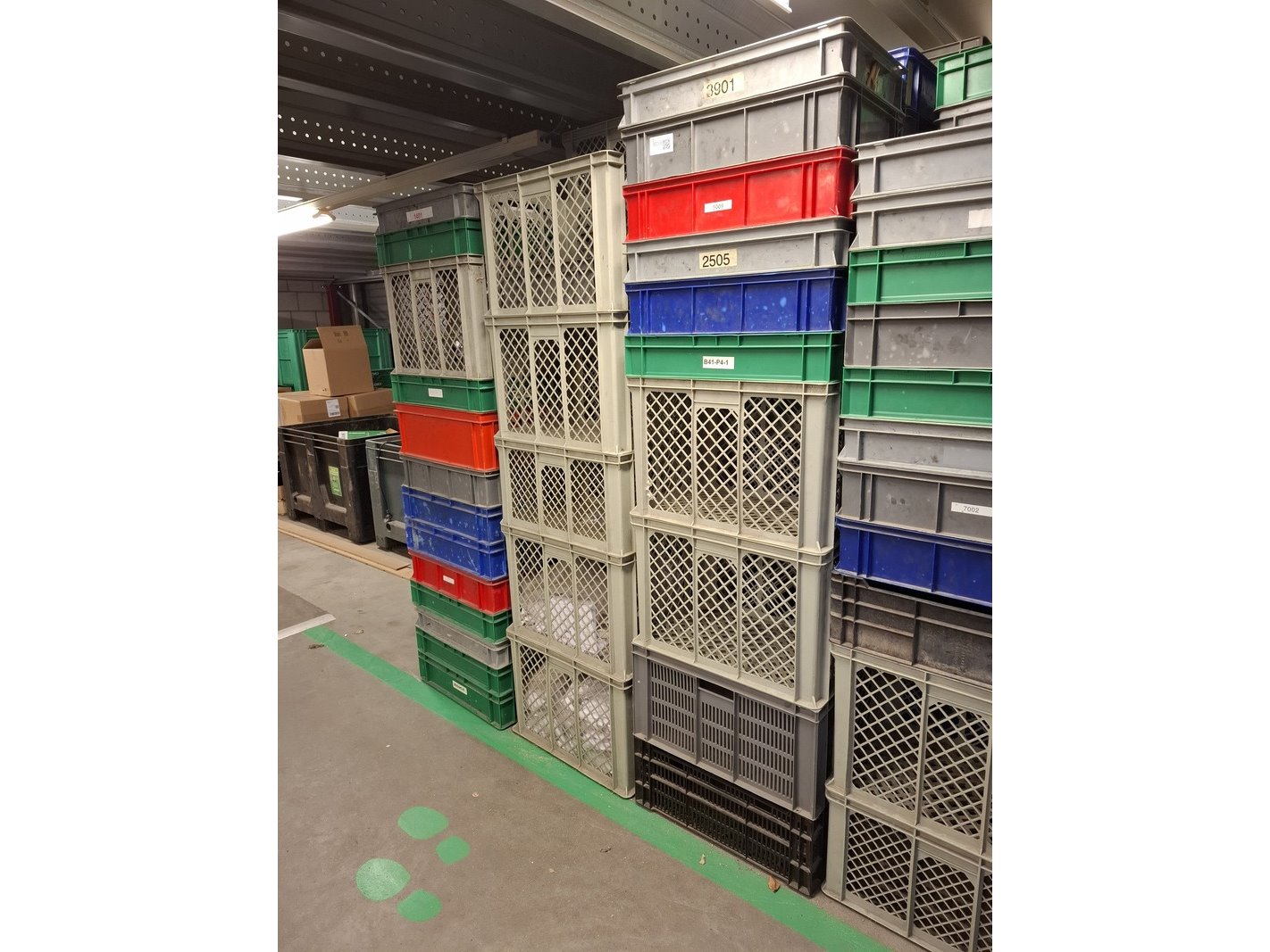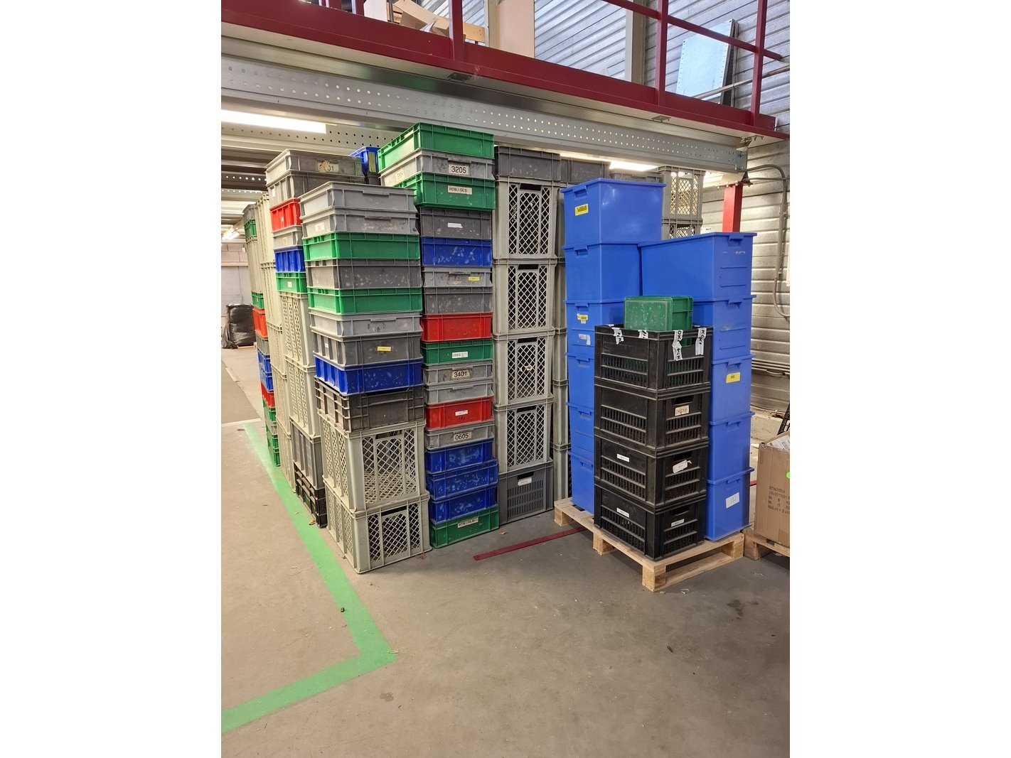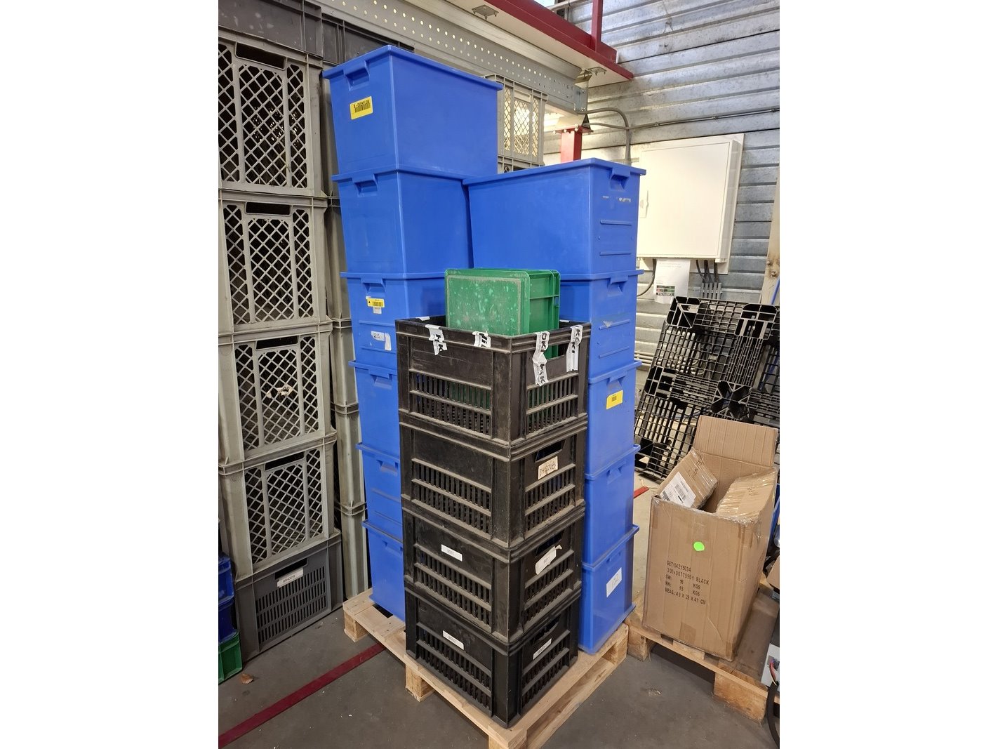 Partij kunststof kratten in diverse maten