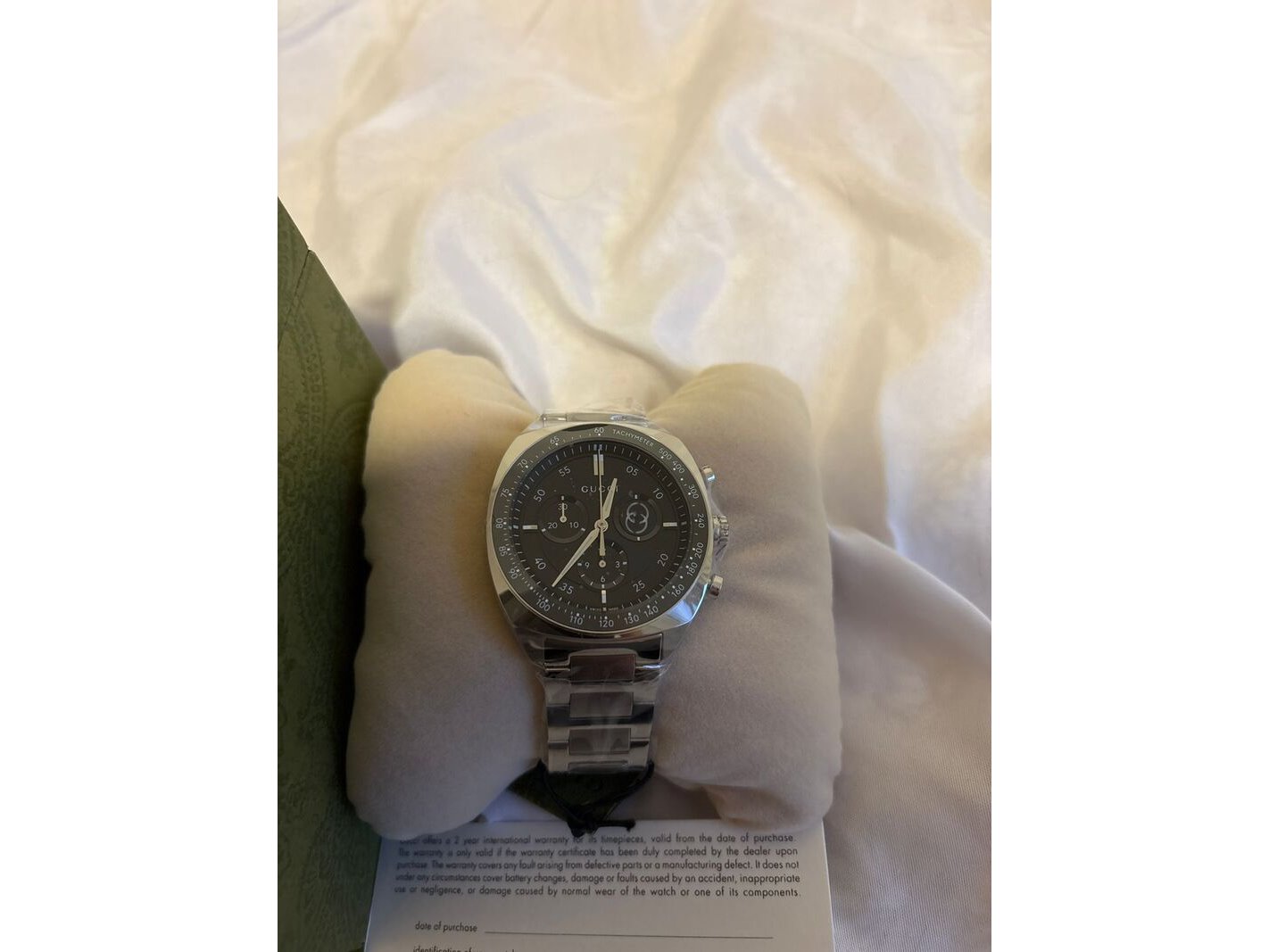Merk: Gucci Product: Horloge Materiaal: Stainless steel case, Stainless steel bracelet, Sapphire glass Afmeting: 41 MM Conditie: Nieuw Specificaties: Gucci horloge YA142316 nieuw met doosje en tags Stainless steel case en bracelet Sapphire glass 41MM maat Swiss made