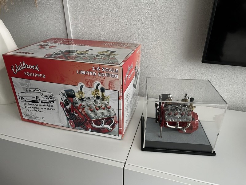 Merk: GMP Product: GMP Edelbrock Ford V8 Flathead 1:6 schaalmodel Materiaal: Metaal Afmeting: Schaal 1:6 Conditie: Gebruikt Specificaties: Schaalmodel van de Edelbrock Ford V8 Flathead van GMP in schaal 1:6. Limited edition, zeer gedetailleerd. Inclusief de originele doos en een originele displaycase.