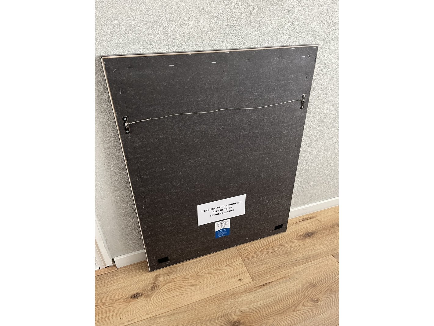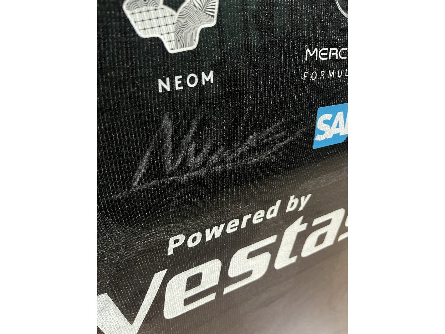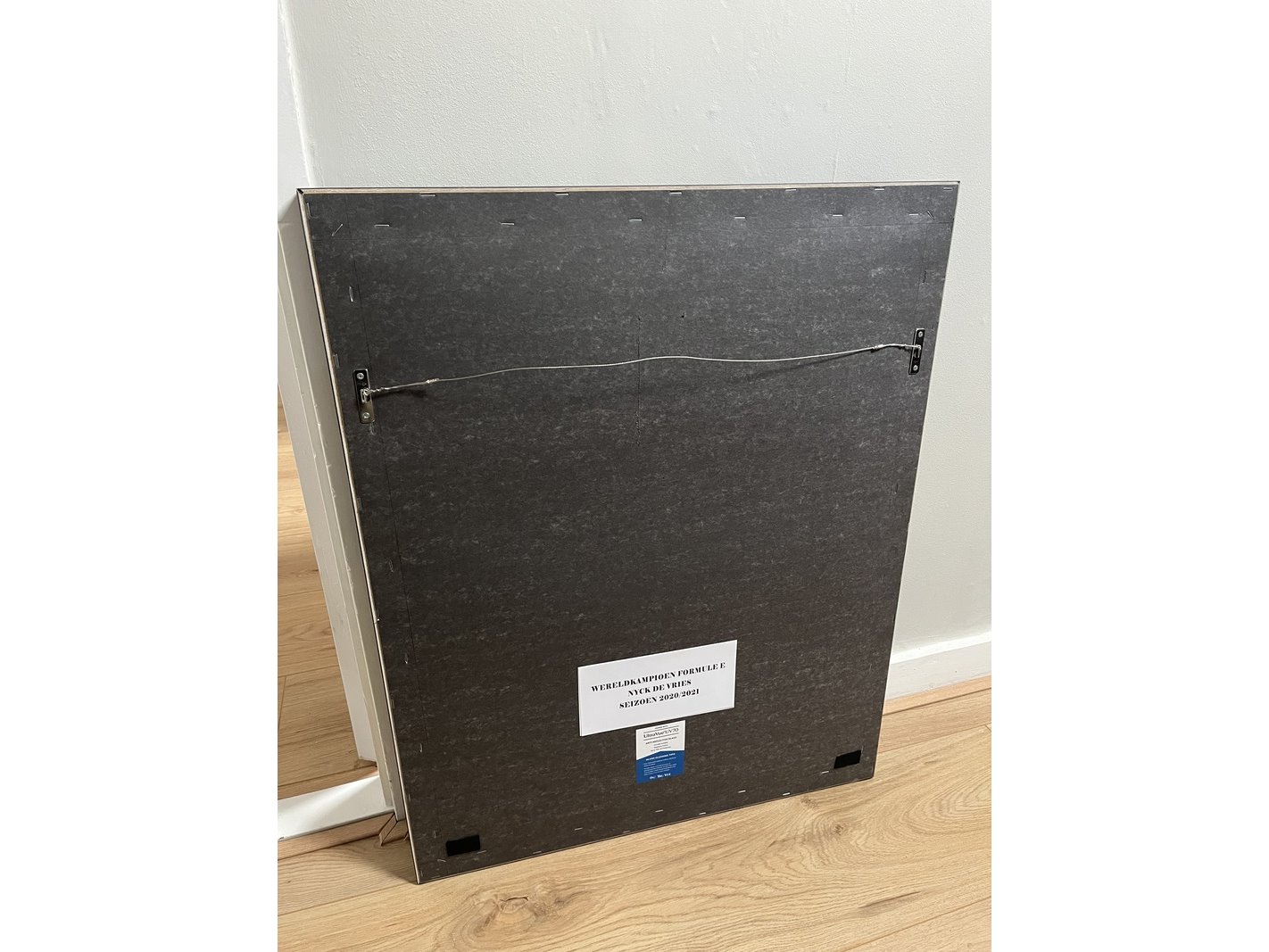 Product: Handgesigneerd Nomex undersuit Nyck de Vries Conditie: Gebruikt Specificaties: Handgesigneerd Nomex undersuit van Nyck de Vries. Afkomstig uit seizoen 2020/2021, het jaar waarmee Nyck kampioen werd in zijn Mercedes in de Formule E. Tussentijds is Nyck testrijder geweest in de Formule 1 voor het team van Mercedes en inmiddels is hij wederom actief in de Formule E. Het shirt is handgesigneerd en geschonken door Nyck zelf aan de toenmalige directie welke de Formule E wilde organiseren in Rotterdam. Helaas heeft dit spektakel nooit plaatsgevonden door het terugtrekken van enkele investeerders.