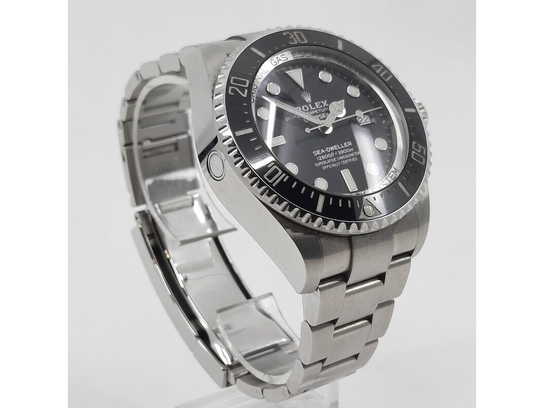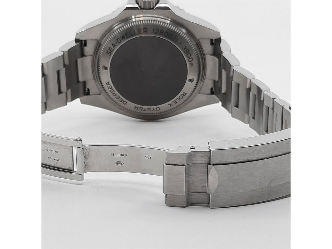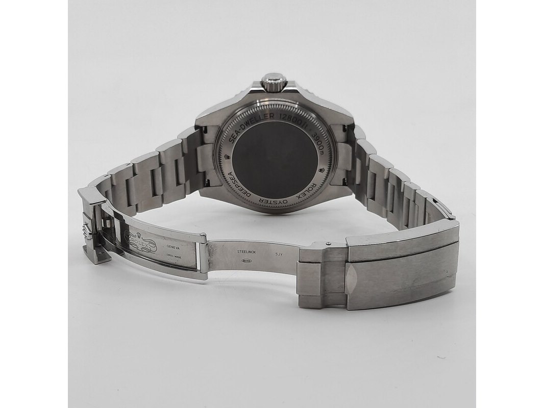 Product: Horloge Rolex Specificaties: Een stalen heren polshorloge, Rolex DeepSea Sea Dweller 126660. Met zwarte wijzerplaat en stalen band met vouwsluiting. Geen doos en geen certificaat. Inclusief horloge opbergdoos.