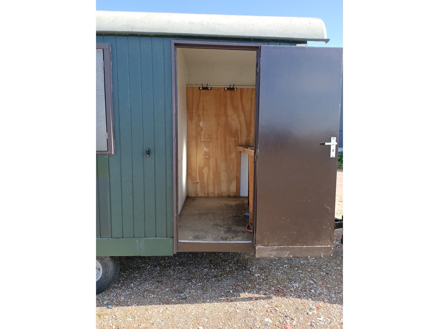 Merk: Brouwer Product: Schaftkeet Afmeting: Afmeting opbouw ca. 405x195 cm, doorrijhoogte ca. 310 cm Conditie: Gebruikt Specificaties: SN. 81515