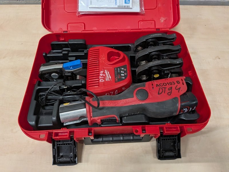 Merk: Novopress Product: Accu perstang BouwJaar: 2025 Specificaties: 1x accu 12V, 2.0Ah, lader, 4x persbek in koffer