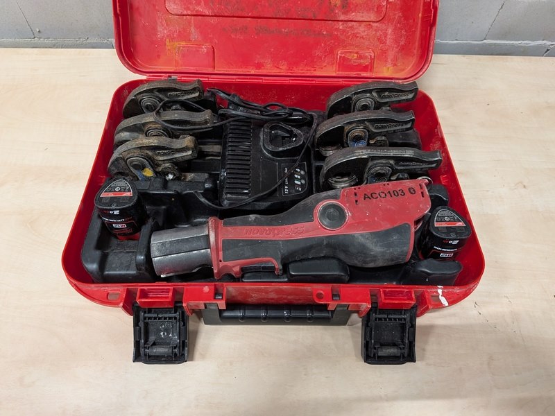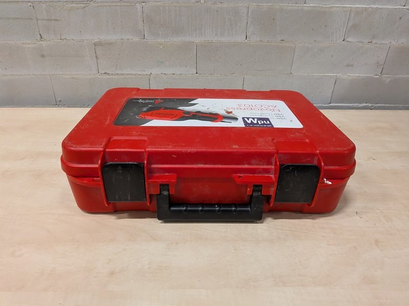 Merk: Novopress Product: Accu perstang BouwJaar: 2021 Specificaties: 2x accu 12V, 2.0Ah, lader, 6x persbek in koffer