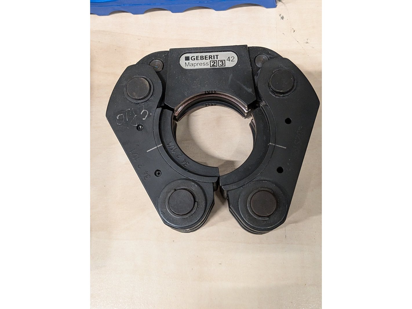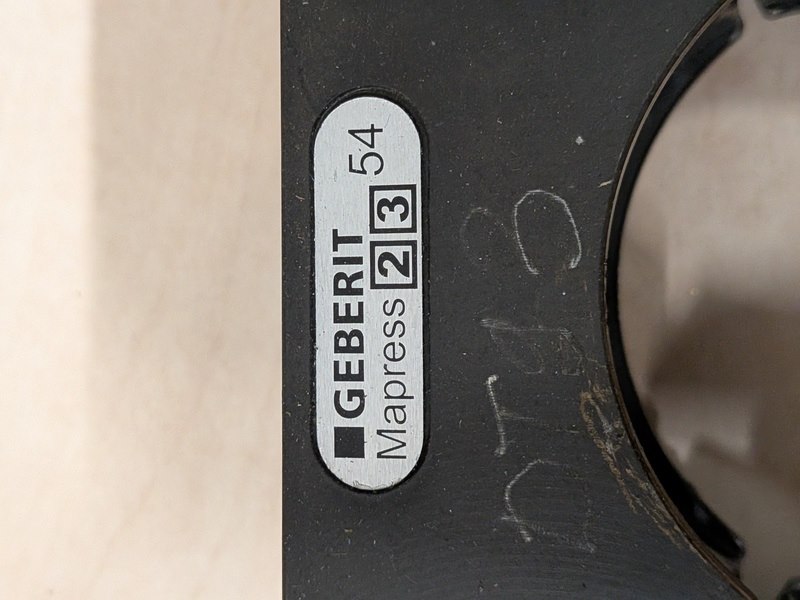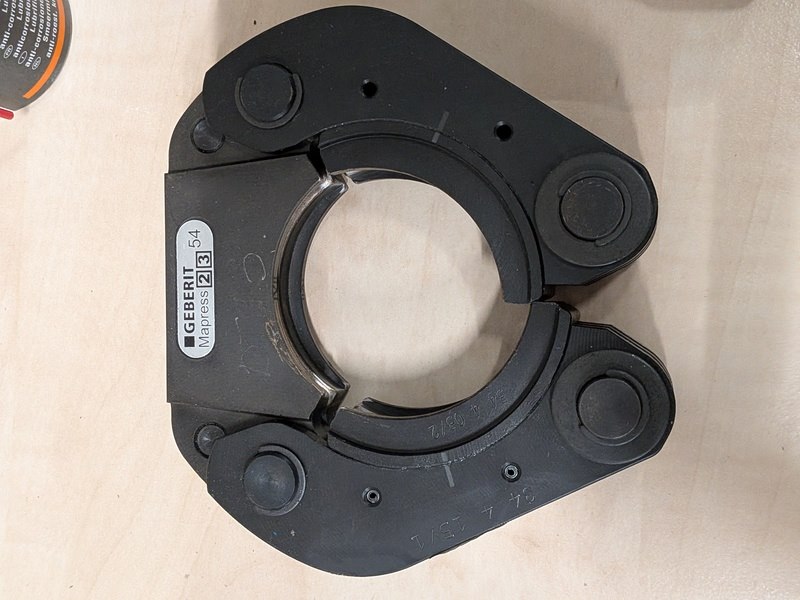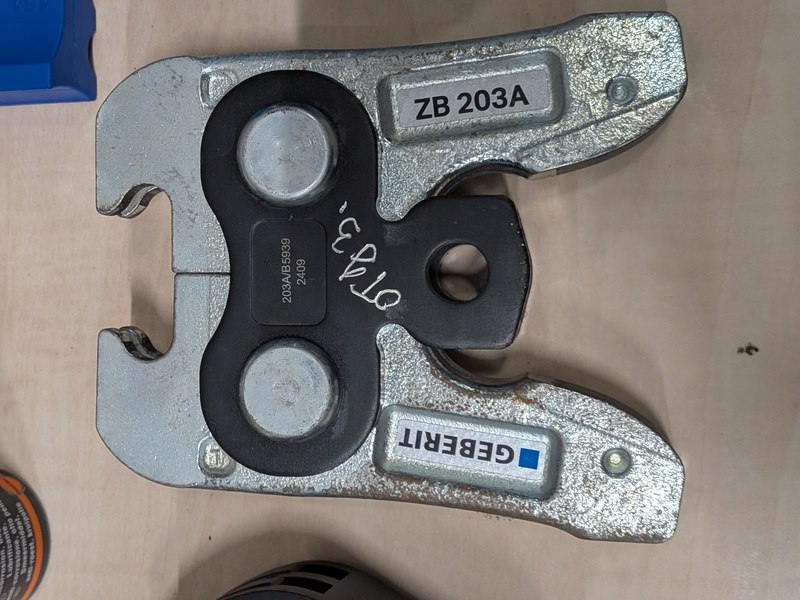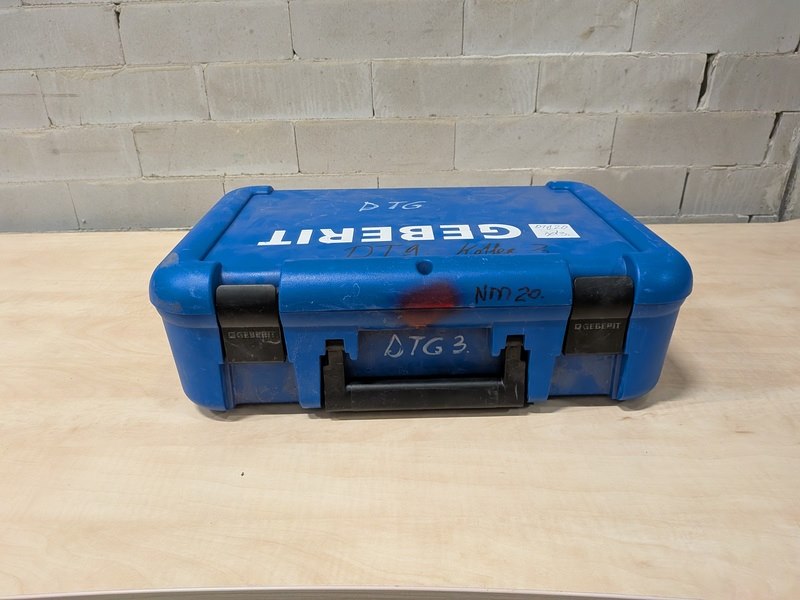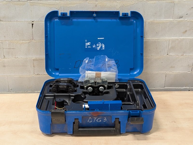 Merk: Geberit Product: Persbek set in koffer Specificaties: Bestaande uit 3x persbek: 42, 54, ZB 203A, met divers toebehoren in koffer