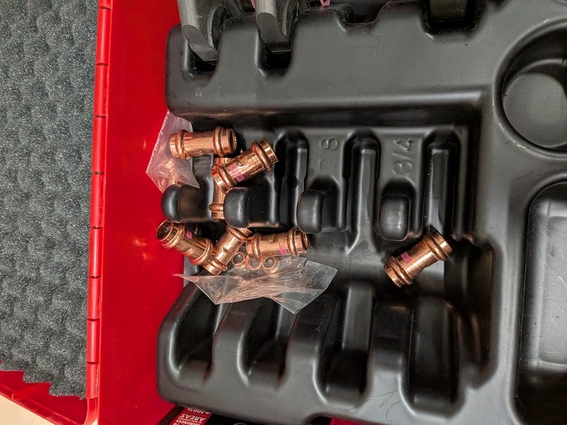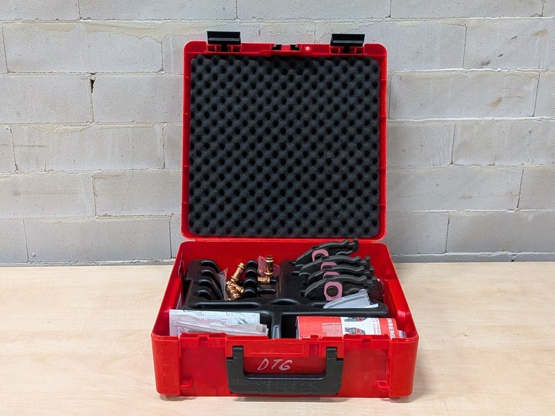 Merk: Rothenberger Product: Persbek set in koffer Specificaties: Bestaande uit 4x persbek R 5/8", R 1/2", R 3/8", R 1/4", inclusief diverse koppelingen, in koffer