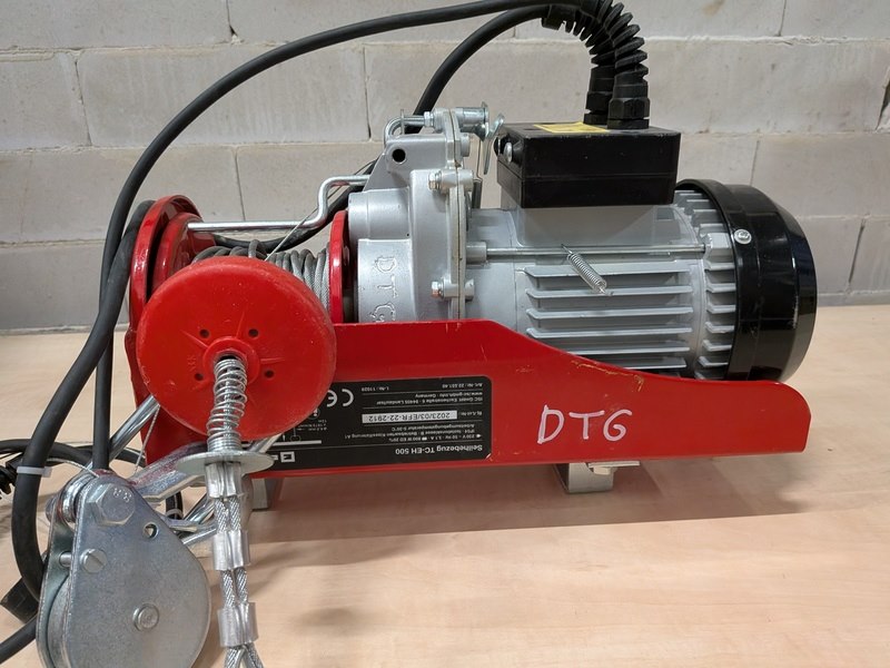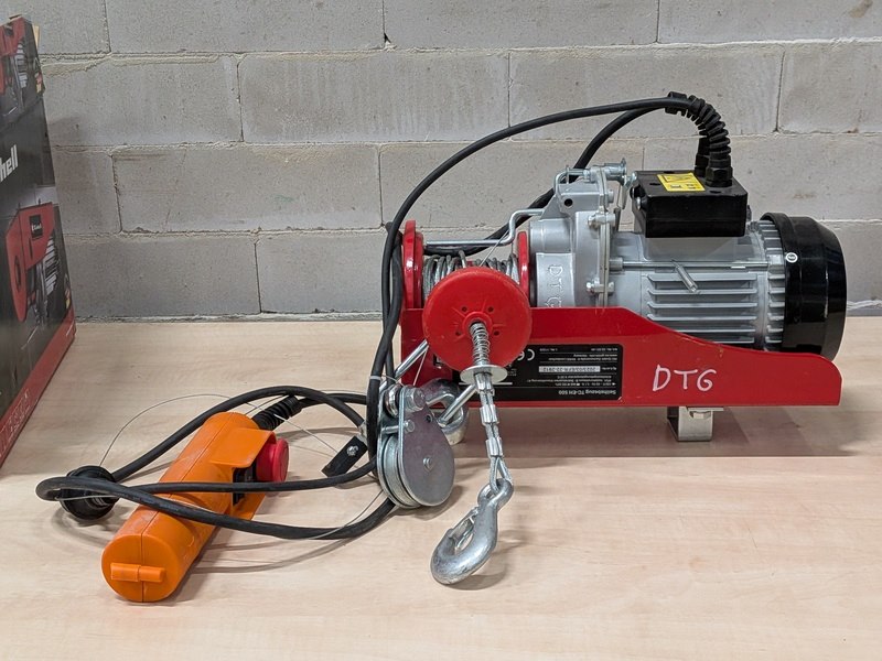 Merk: Einhell Product: Elektrische kabeltakel Afmeting: max. 500 kg Specificaties: 230V, 800W