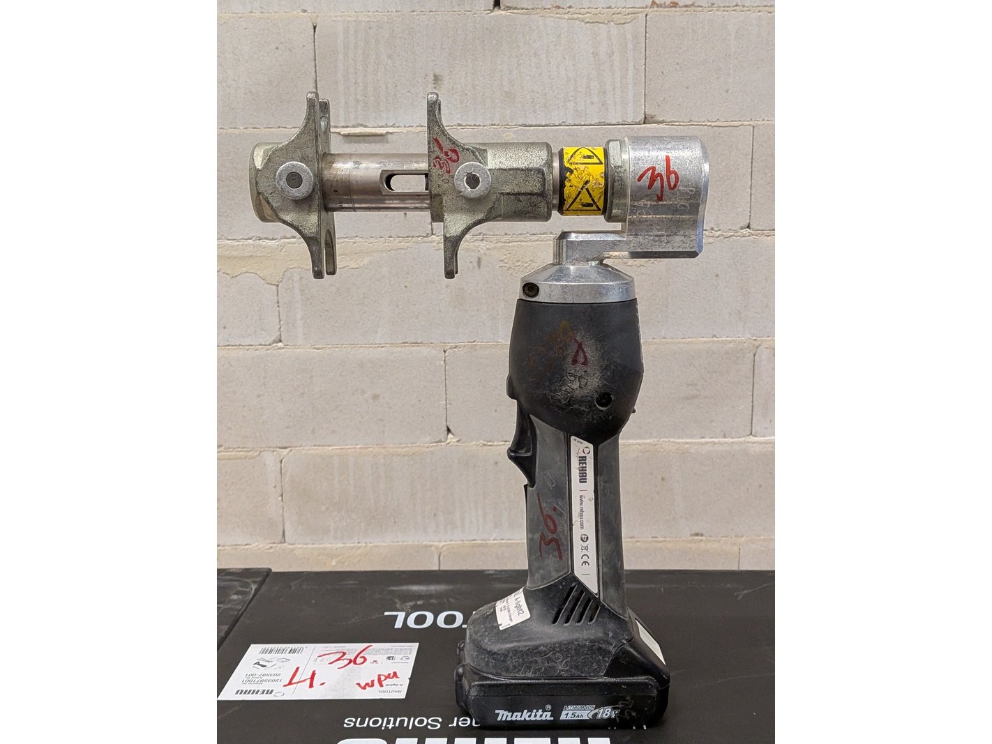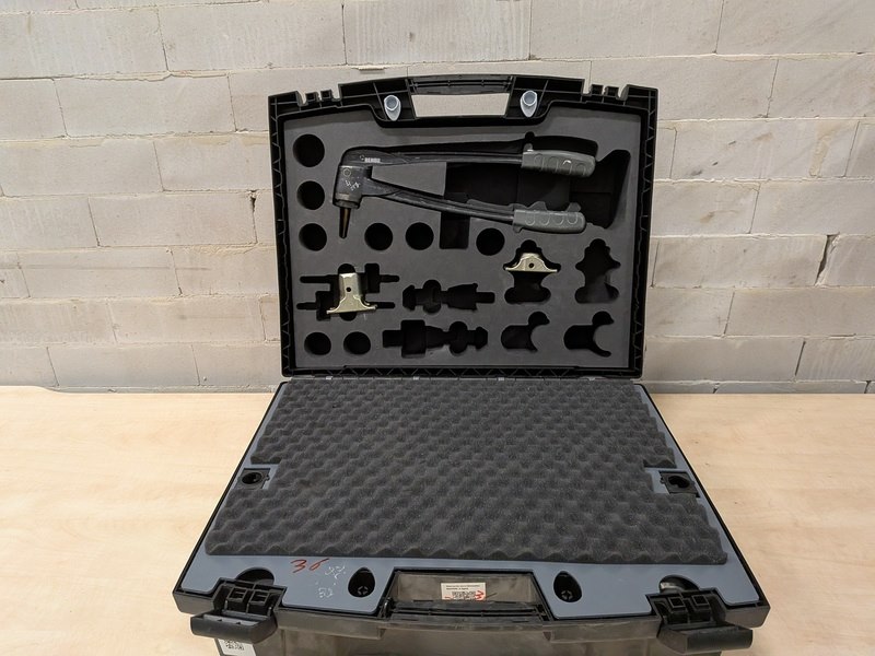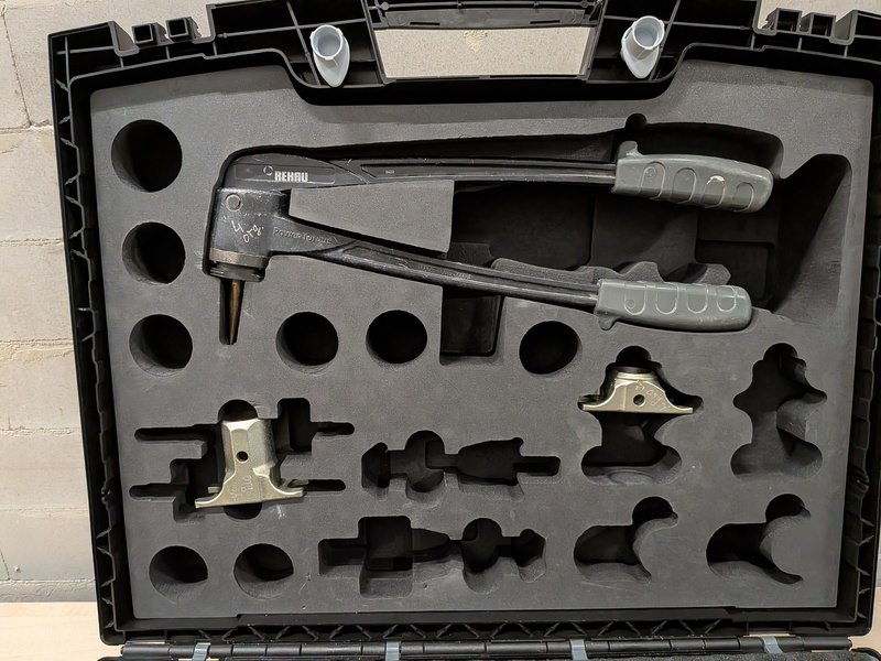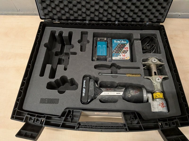 Merk: Rehau Product: Accu persmachine Specificaties: Inclusief 1x accu Makita 18V 1.5Ah, lader, Rehau opwijdtang In koffer met toebehoren