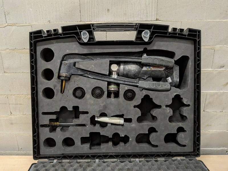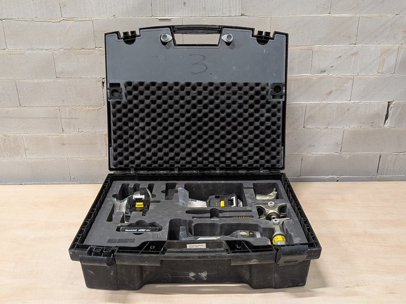 Merk: Rehau Product: Accu persmachine met accu persopwijkmachine Specificaties: Inclusief 3x accu Makita 18V 1.5Ah, Rehau opwijdtang In koffer met toebehoren Exclusief lader