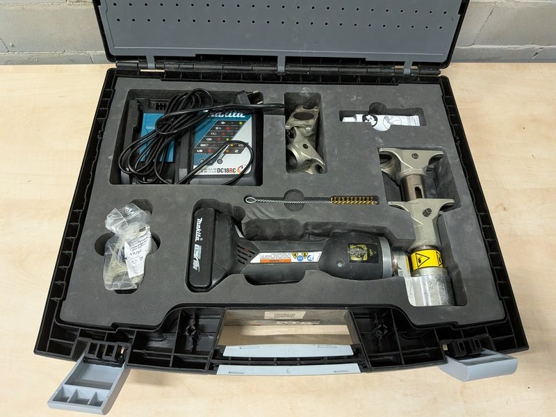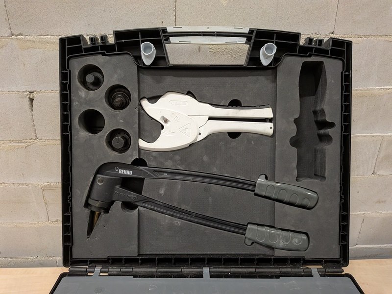 Merk: Rehau Product: Accu persmachine Specificaties: Inclusief 1x accu Makita 18V 1.5Ah, lader, Rehau opwijdtang, buisschaar In koffer met toebehoren