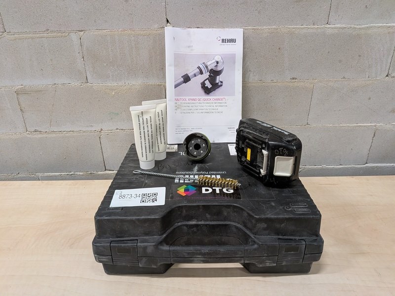 Merk: Rehau Product: Opwijdkop t.b.v. persopwijkmachine Specificaties: 16.2x2.6 QC1 Geschikt voor Rautitan stabil leidingsysteem Inclusief 1x accu Makita 18V, 1.5Ah Exclusief lader In koffer met divers toebehoren