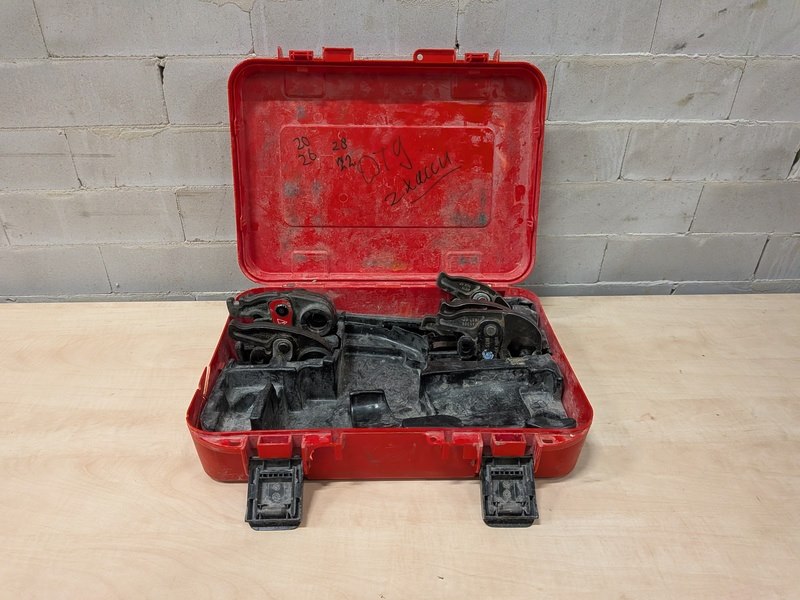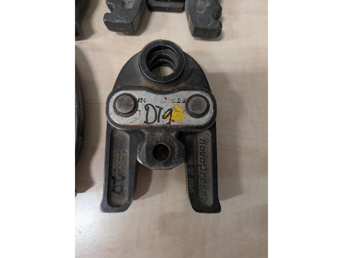 Merk: Novopress, Wavin, Rothenberger Product: Persbek Specificaties: 6x diverse maten persbek in koffer Koffer gammel