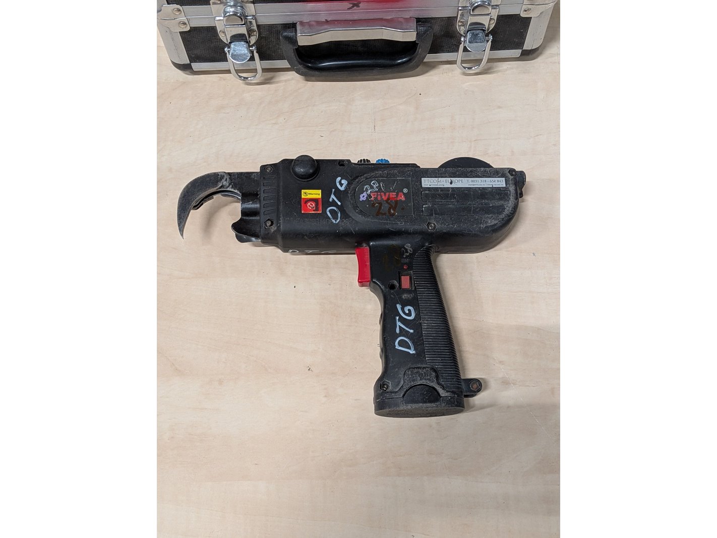 Merk: Fivea Product: Accu vlechtmachine voor bewapening en vloerverwarming BouwJaar: 2014 Specificaties: Inclusief 2x accu 10.8V 1450 mAh, lader
