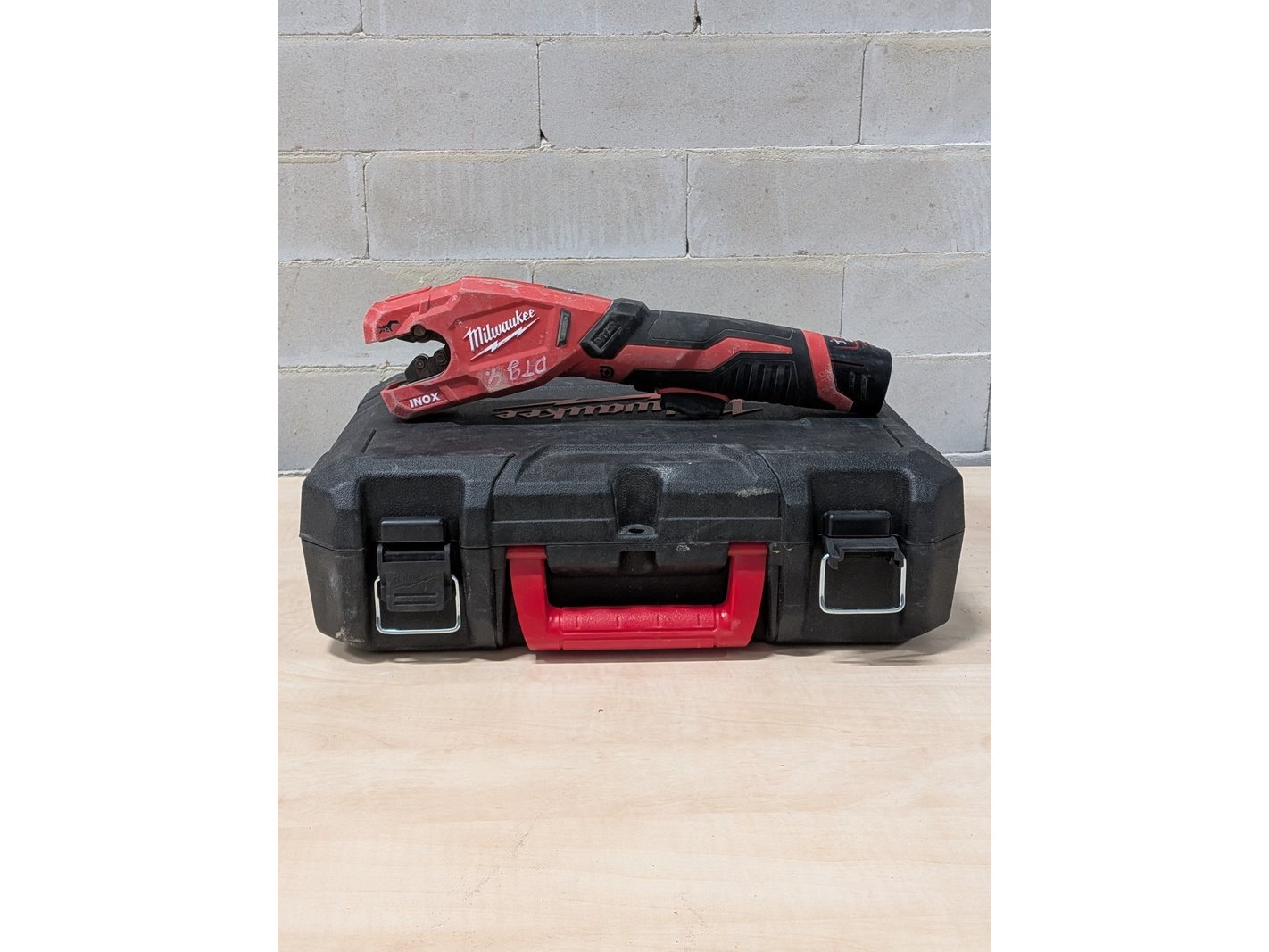 Merk: Milwaukee Product: Accu pijpsnijder Afmeting: ø min 12mm - ø max 28mm BouwJaar: 2025 Specificaties: Inclusief 2x accu 12V 2.0Ah, lader in koffer