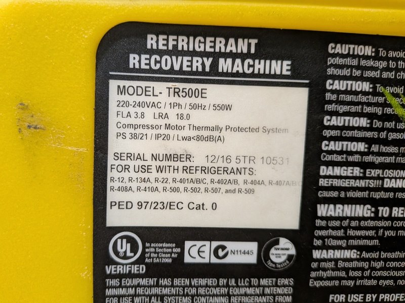 Koelmiddel afpompunit met 3x gasfles r-32 diflormethaan, cps, tr500e