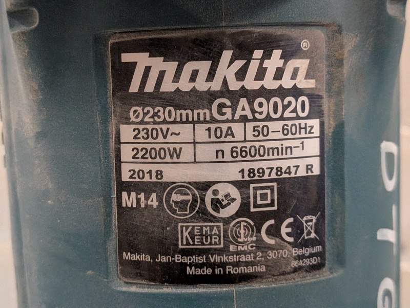 Merk: Makita Product: haakse slijper Afmeting: ø 230mm Specificaties: 230V, 2200W