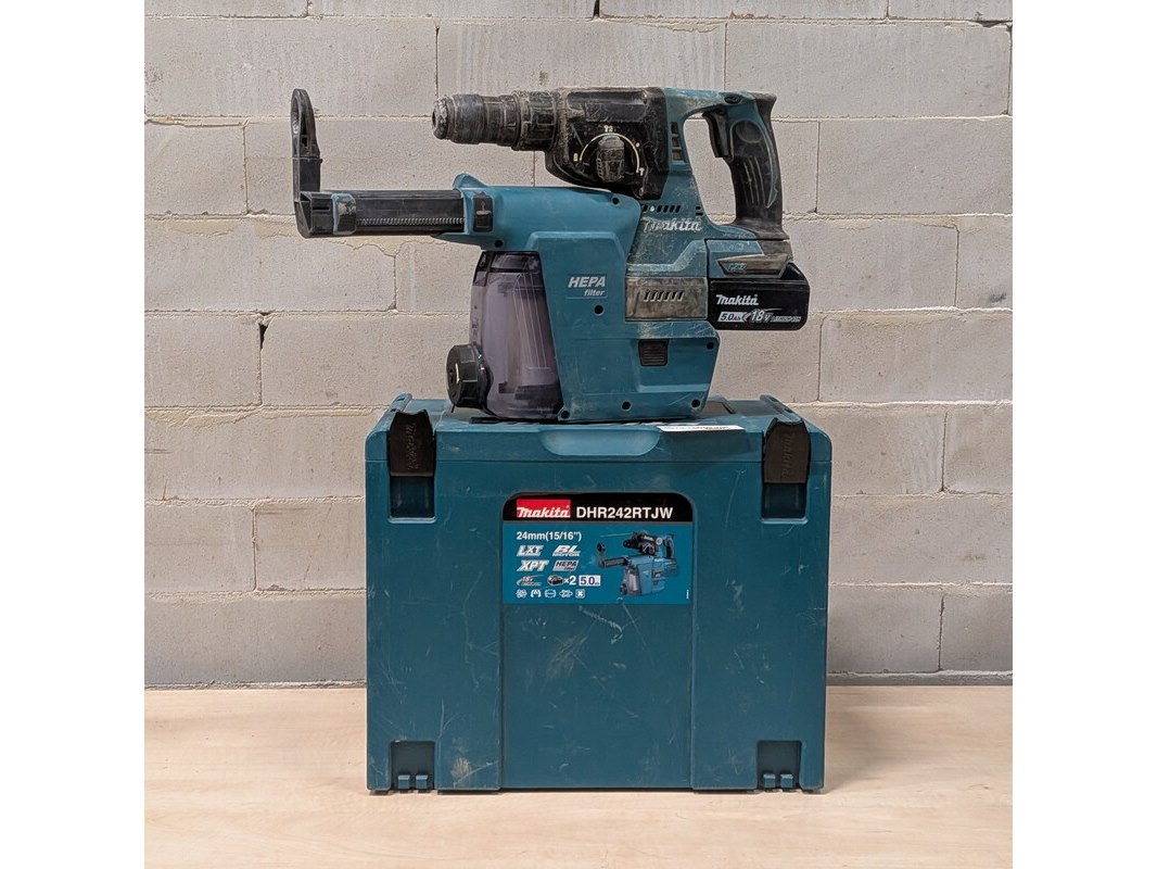Merk: Makita DHR243, Makita DX07 Product: Accu boorhamer met filter Specificaties: Boorhamer bouwjaar 2022 Inclusief 1x accu 18V, 5.0 Ah, in systainer