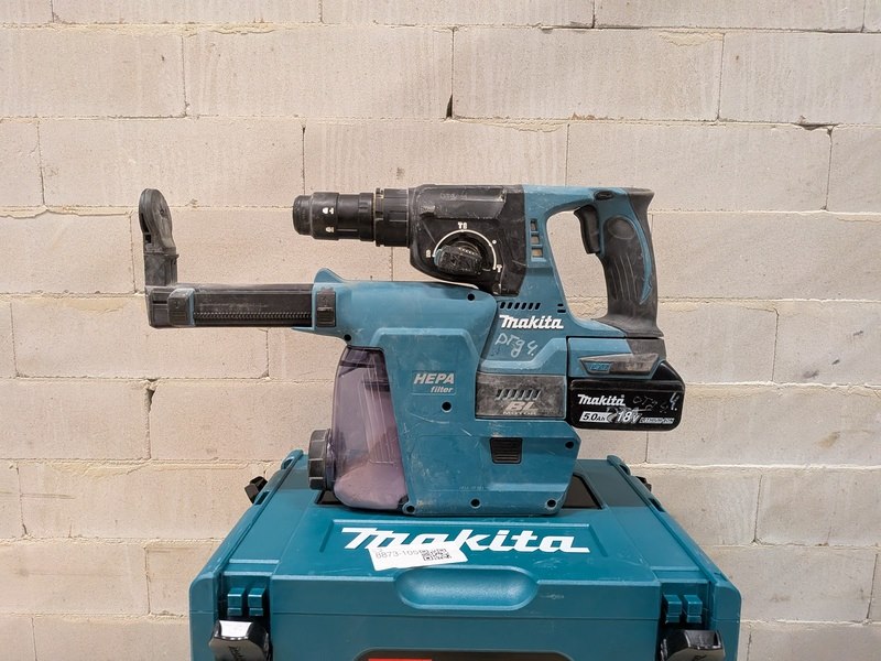 Merk: Makita DHR243, Makita DX07 Product: Accu boorhamer met filter BouwJaar: 2025 Specificaties: Boorhamer bouwjaar 2022 Inclusief 1x accu 18V, 5.0 Ah, in systainer exclusief lader