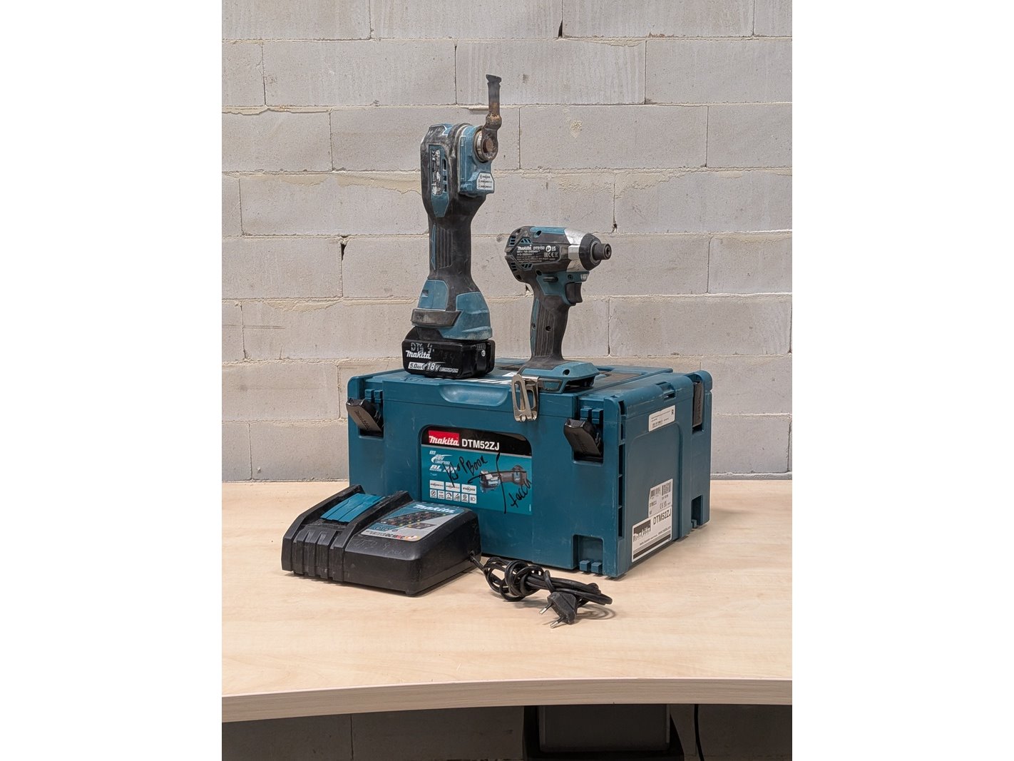 Merk: Makita DTM52, Makita DTD153 Product: Accu multitool met accu slagschroevendraaier Specificaties: Bestaande uit: 1x multitool DTM52, bouwjaar 2023 1x slagschroevendraaier DTD153, bouwjaar 2025 1x accu 18V 5.0Ah 1x lader in systainer