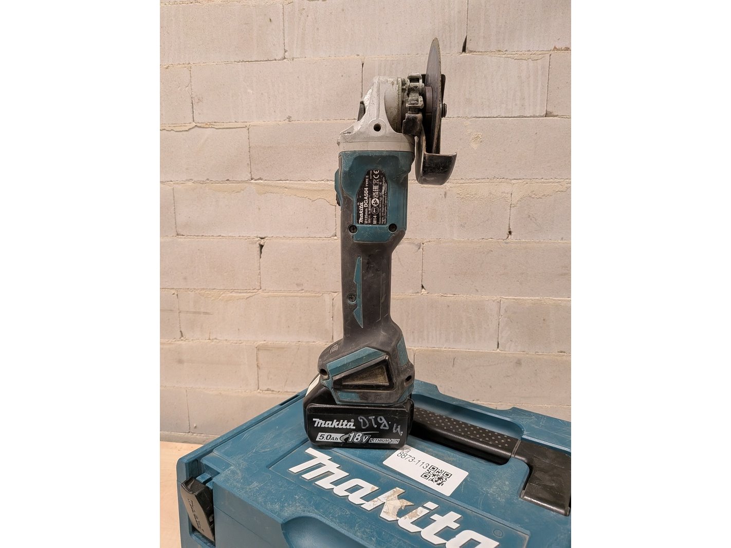 Merk: Makita DG504, Makita DHP486 Product: Accu haakse slijper met accu schroevendraaier Specificaties: Bestaande uit: 1x accu haakse slijper Makita DG504, bouwjaar 2023 1x accu schroevendraaier Makita DHP486, bouwjaar 2025 1x accu 18V 5.0Ah In systainer exclusief lader