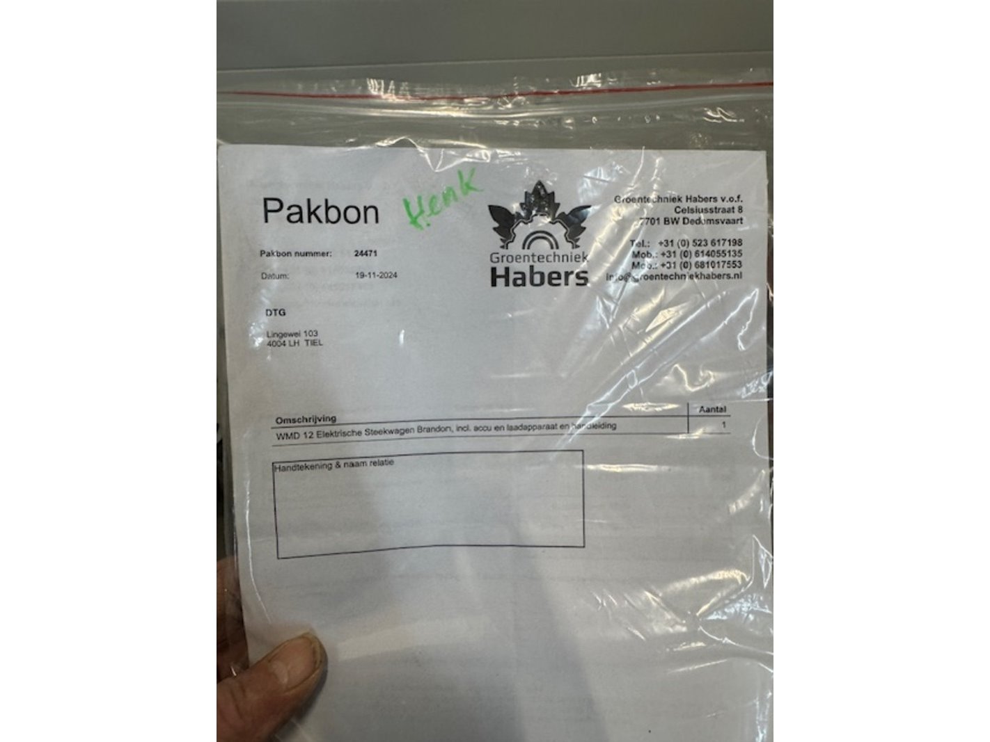 Merk: Brandon Product: Elektrische steekwagen Specificaties: incl. accu en laadapparaat. Max 250kg laadvermogen
