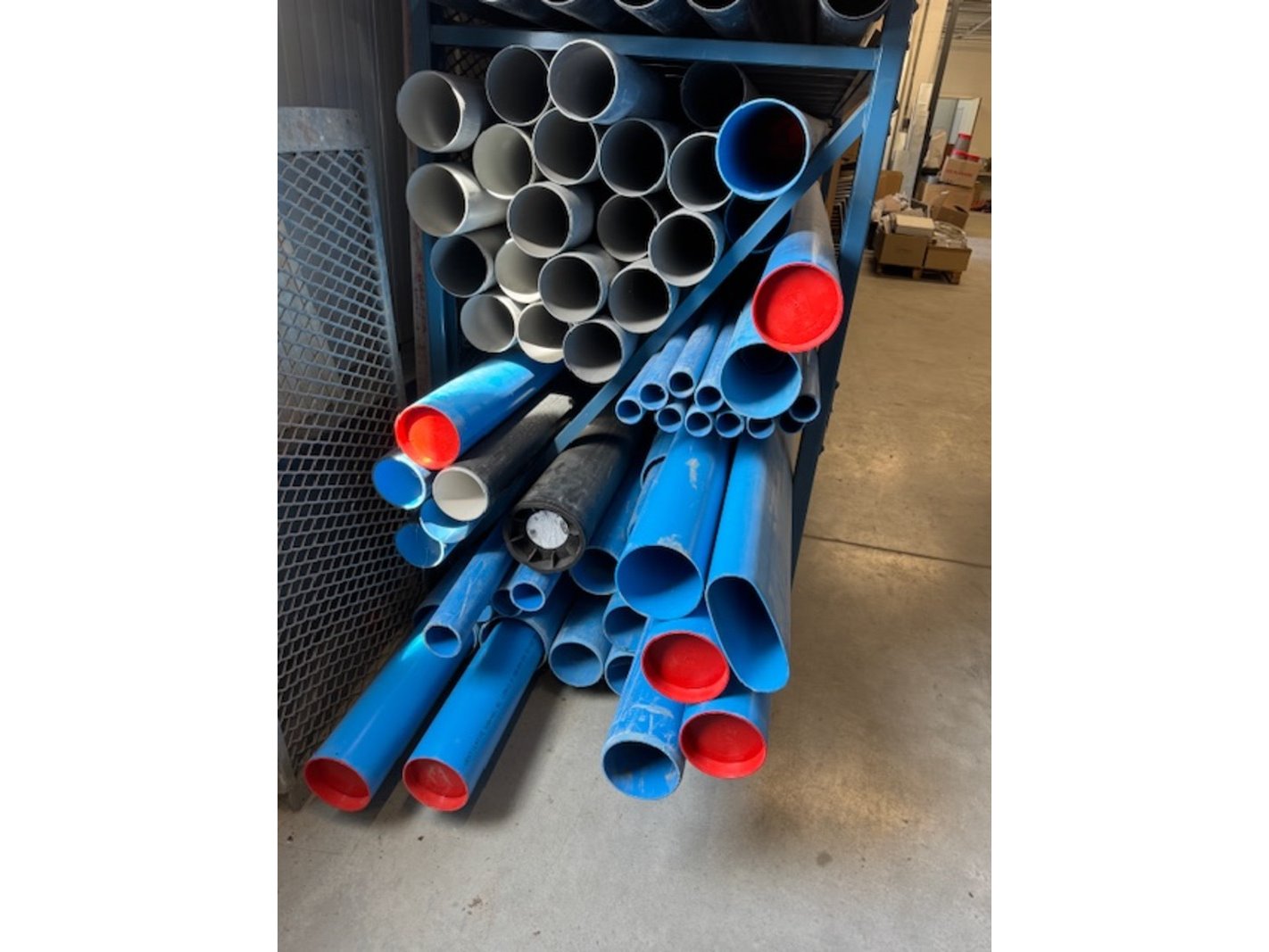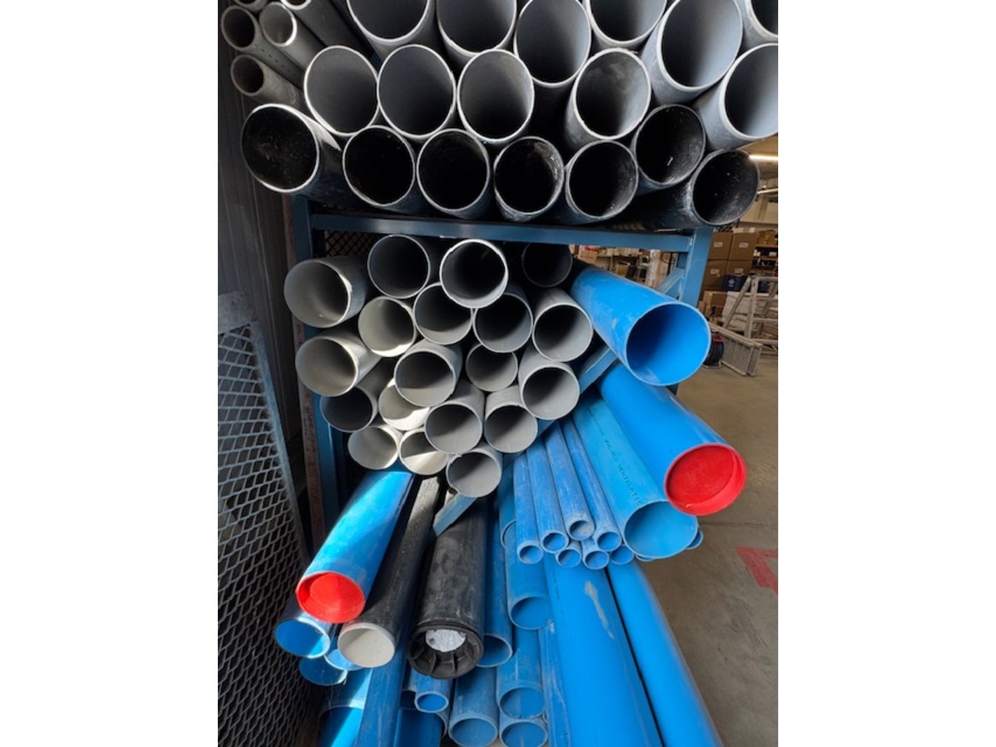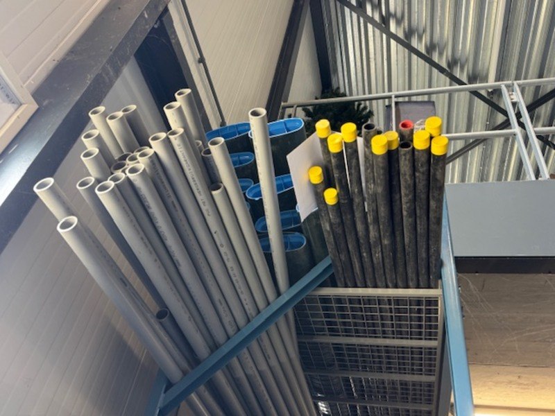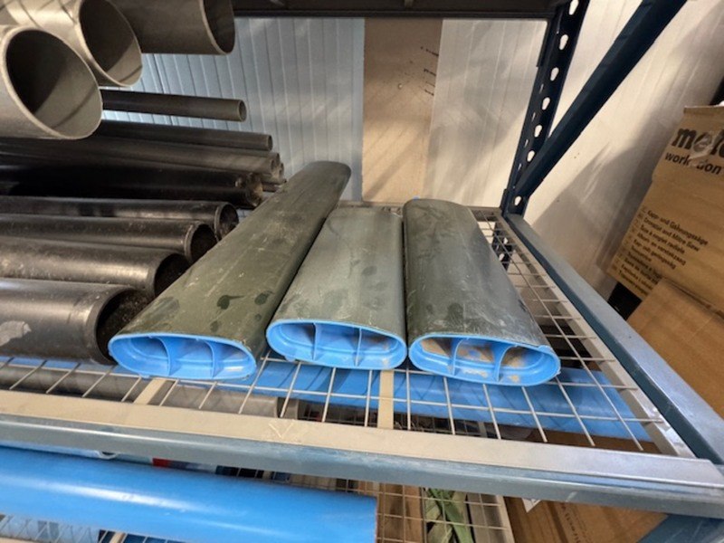 Merk: Wavin Product: Partij PVC buizen Materiaal: kunststof Afmeting: lengtes 4 tot 6 meter Specificaties: blauw, grijs, zwart, groen