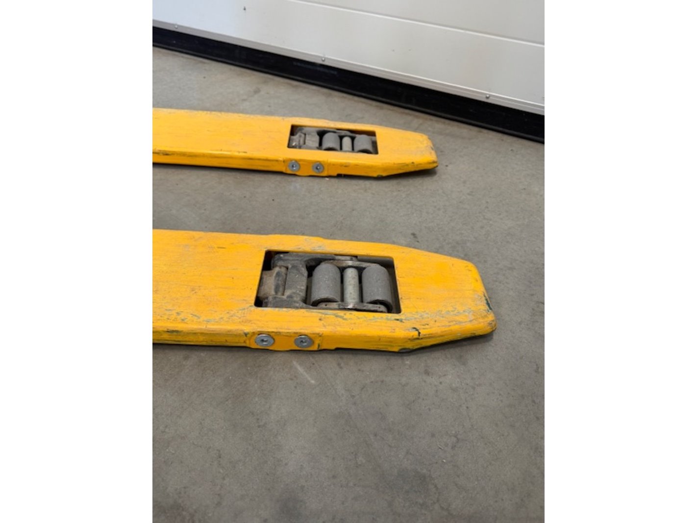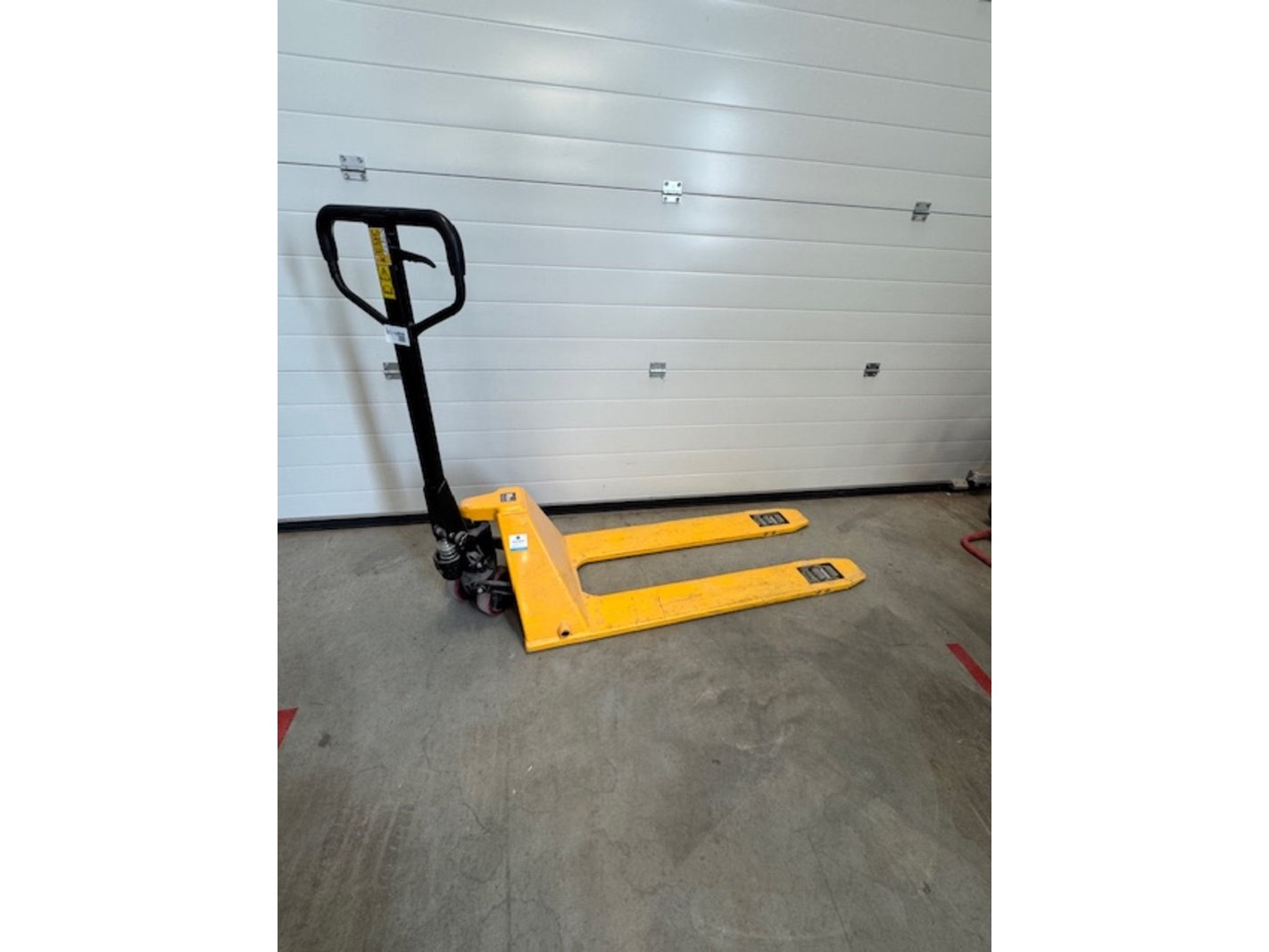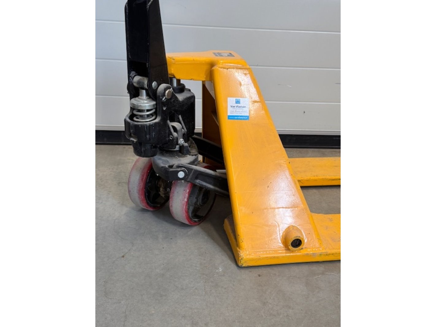 Product: Palletwagen Kleur: geel BouwJaar: inrijhoogte 35mm Specificaties: max. 1000kg