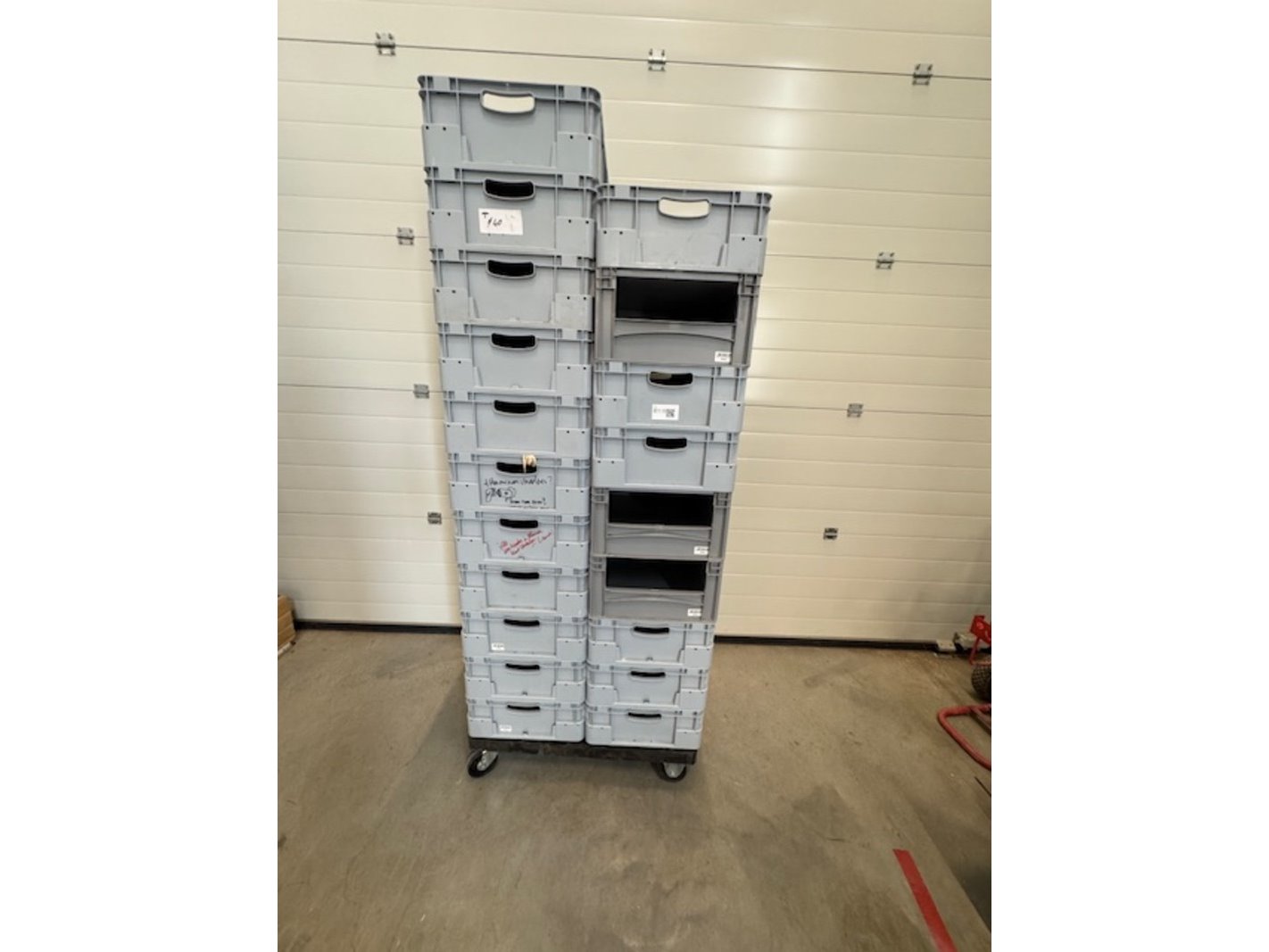 Ca. 20x magazijnbak, silverline enb basicline, grijs, op dolly