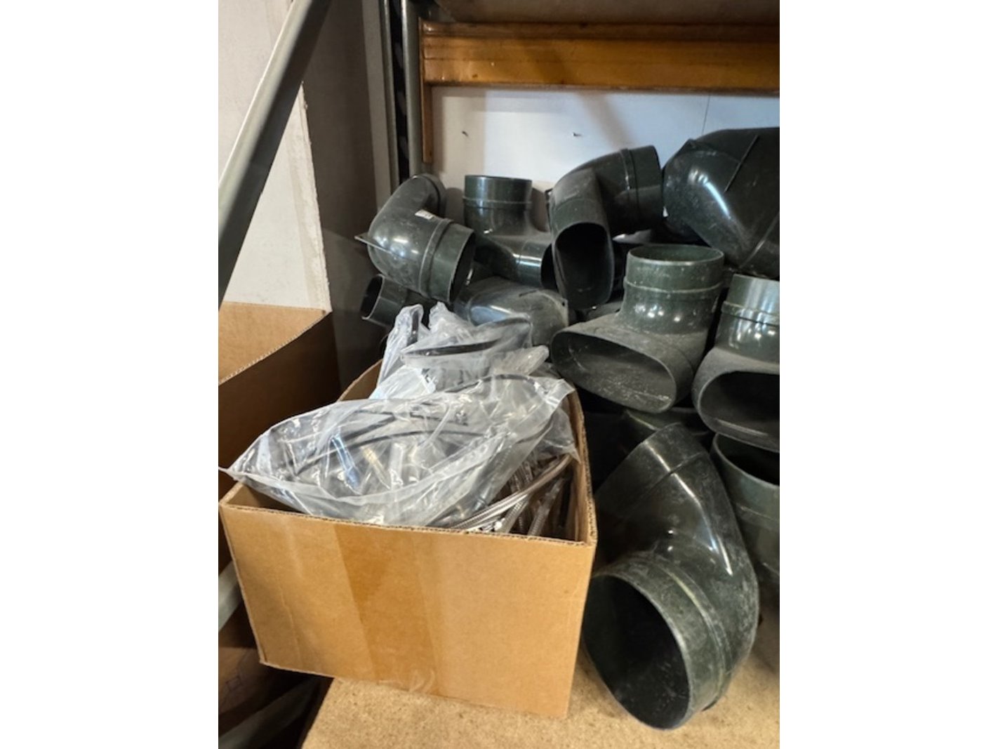 Merk: Dyka Air Product: Partij hulpstukken Kleur: groen Materiaal: PVC-U Specificaties: O.a.: verlopen, bochten , t-stukken, eindstukken, moffen, verlopen etc
