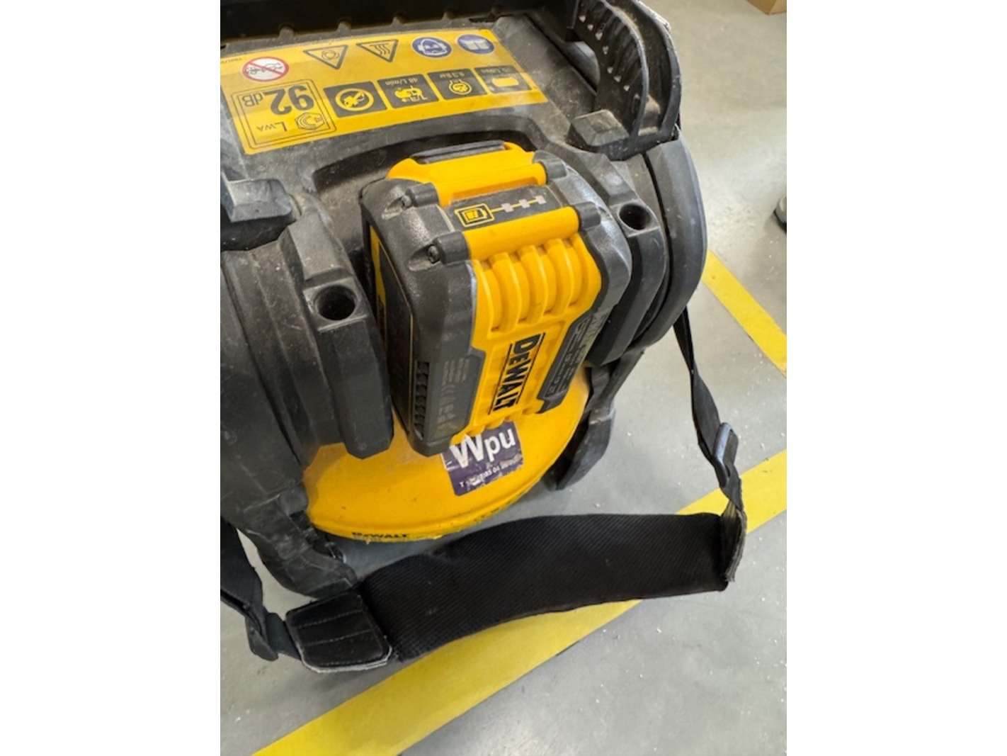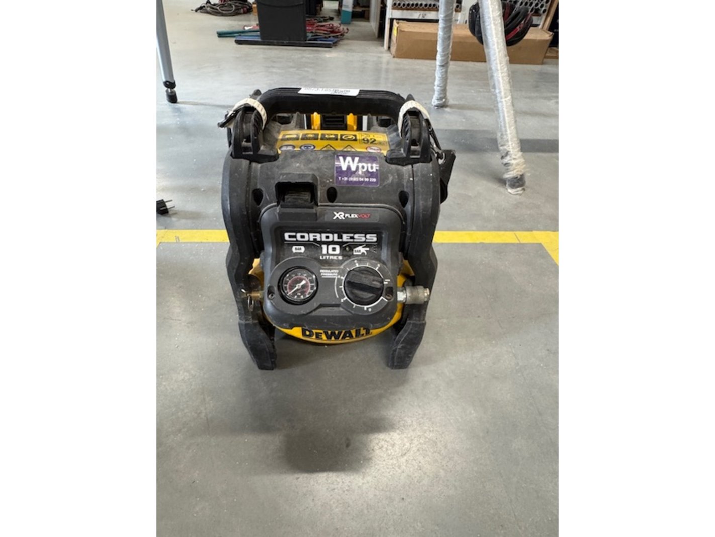 Merk: DeWalt Product: Accu compressor Afmeting: bxdxh ca. 30x40x40cm