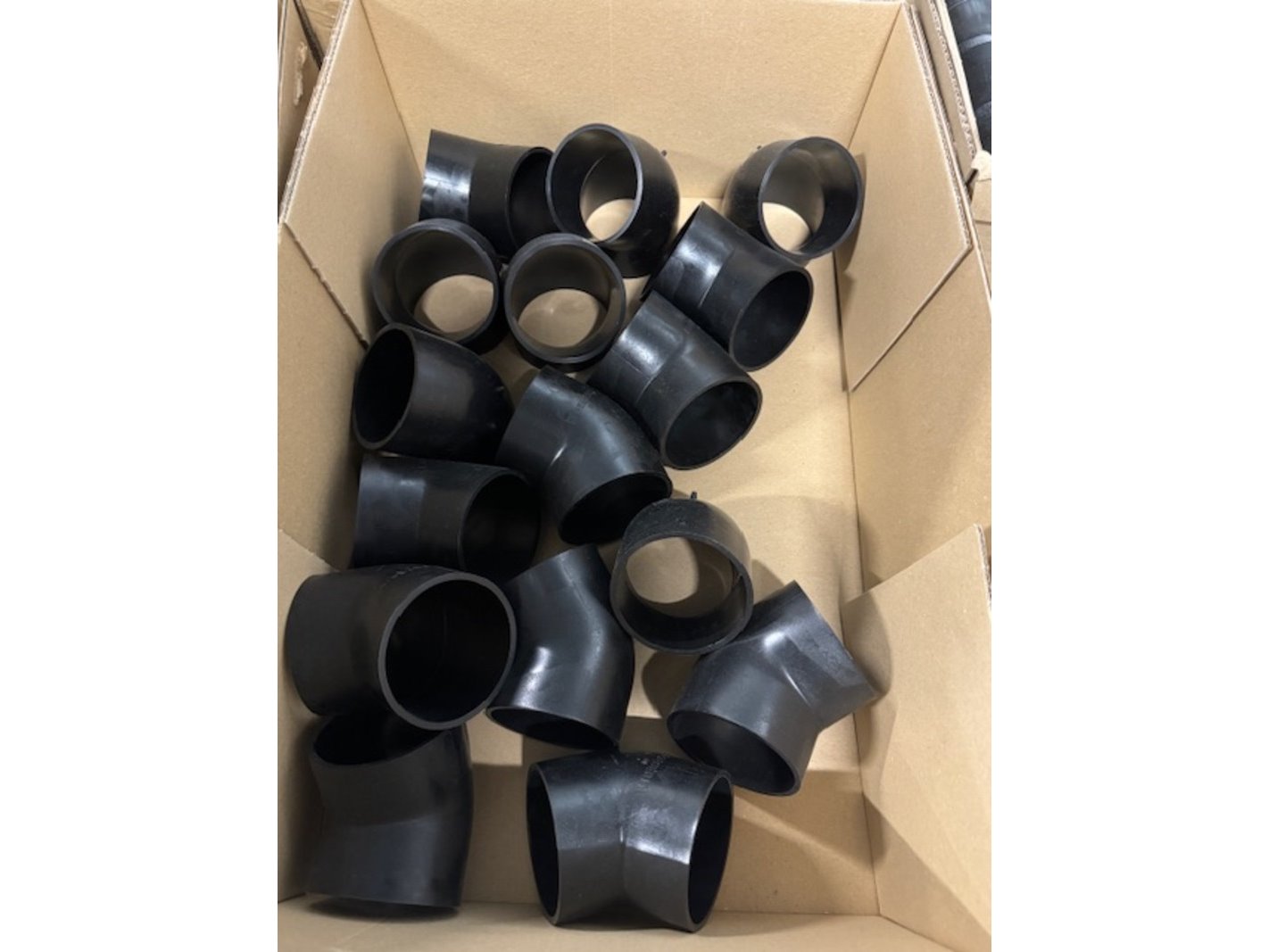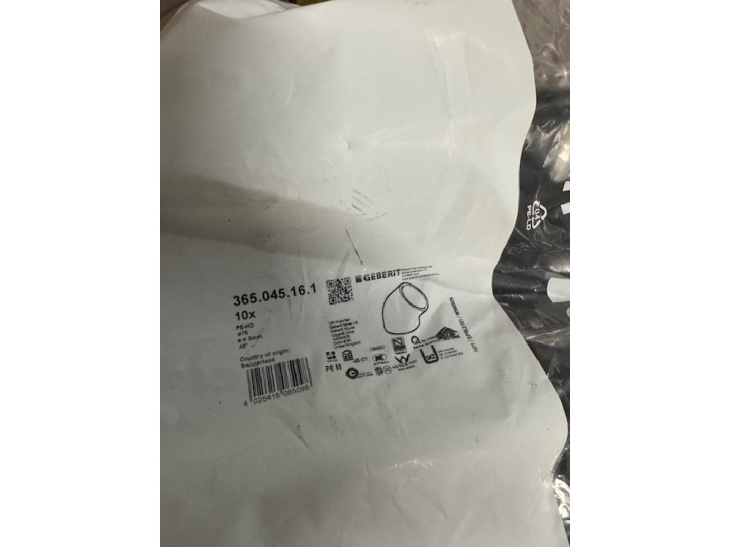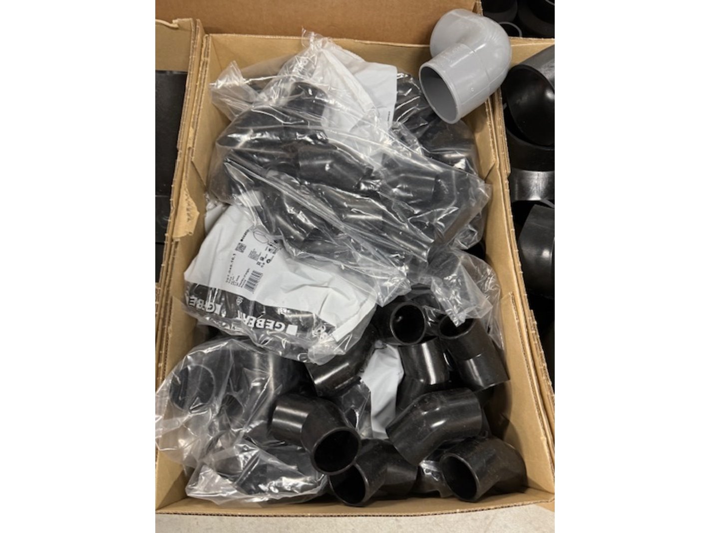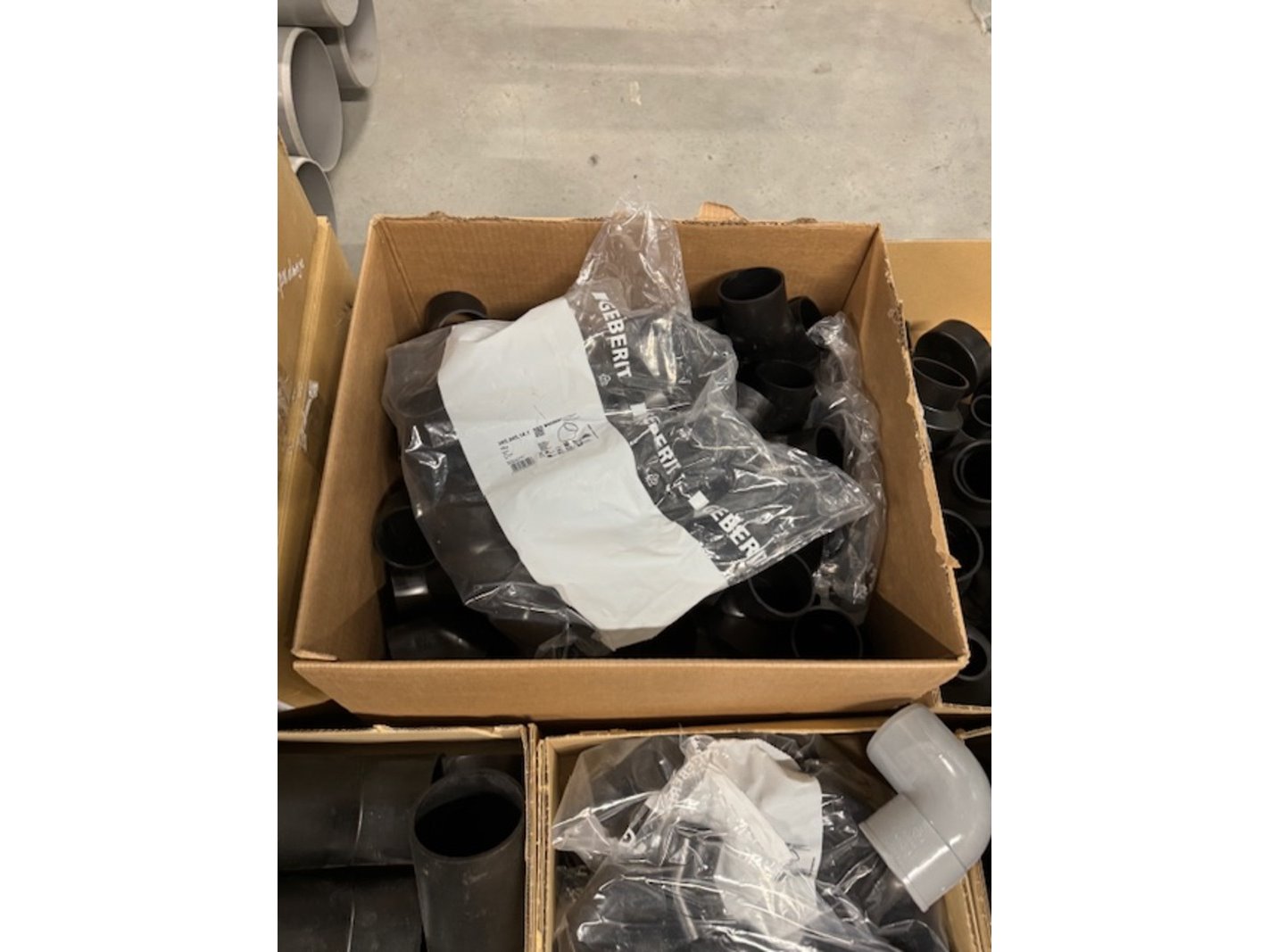 Merk: Geberit Product: Doos PE bochten, T-stukken en verlopen Kleur: zwart Afmeting: diverse diameters