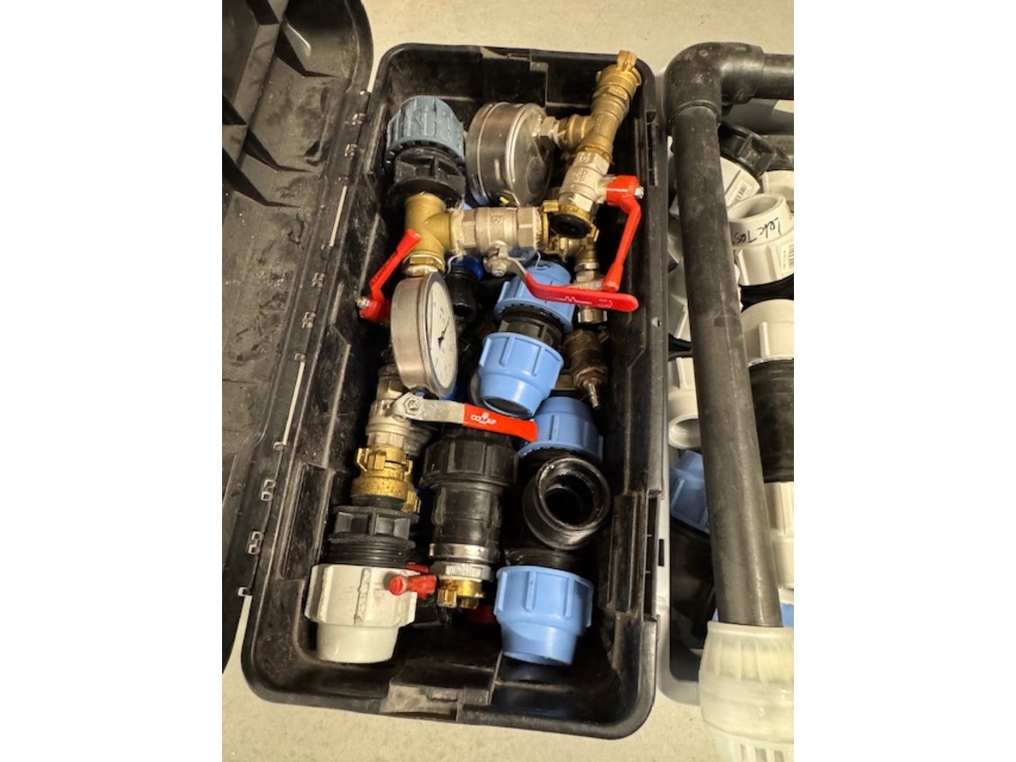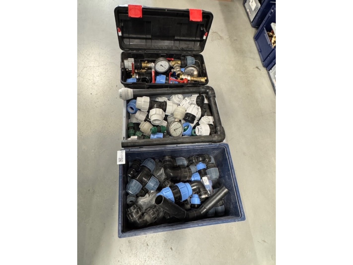 3x bak klemkoppelingen, afsluiters en meters, grijs