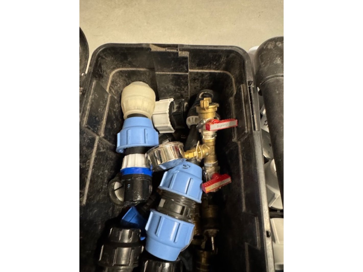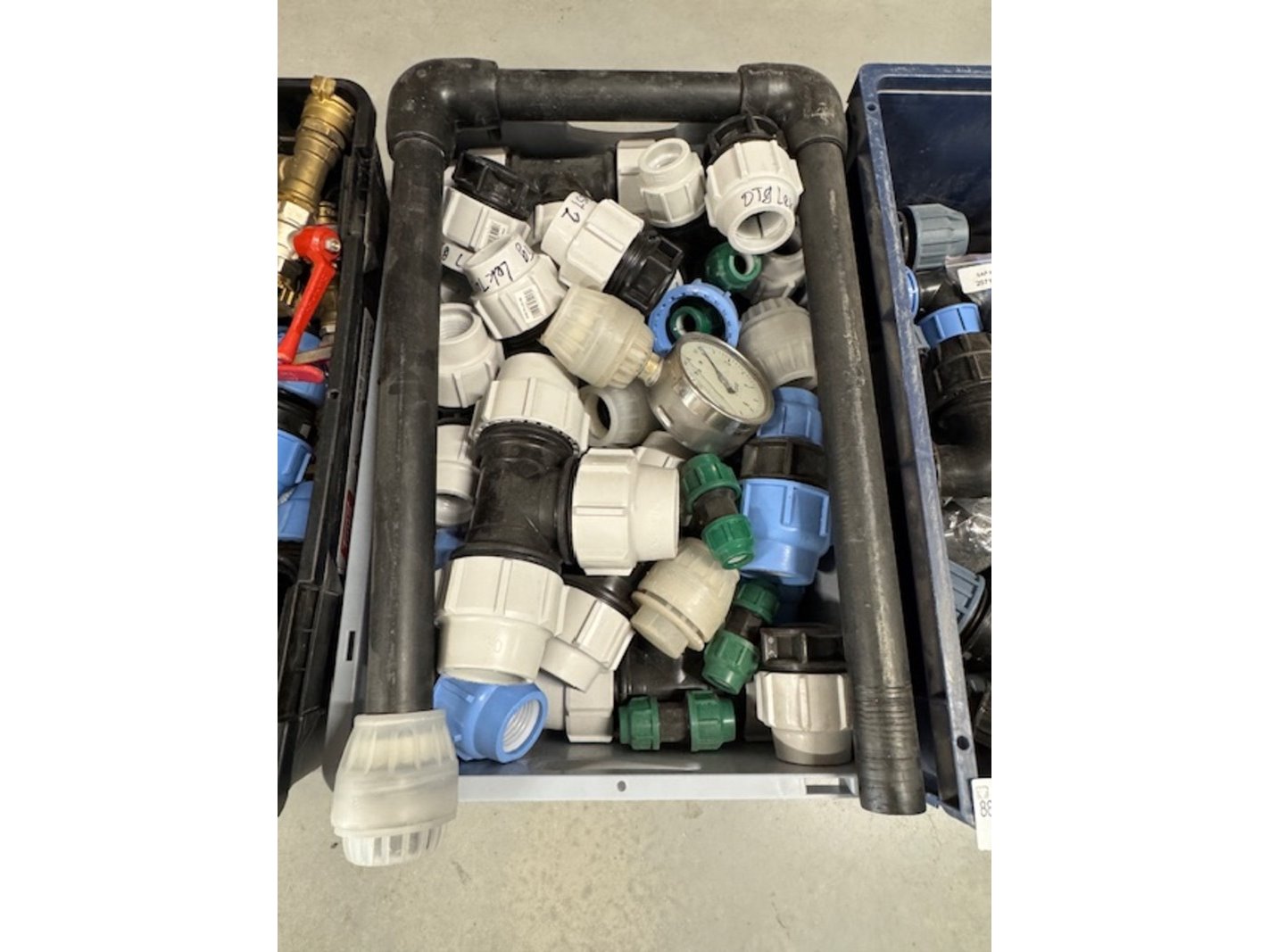 Product: Bak klemkoppelingen, afsluiters en meters Kleur: grijs Materiaal: pvc