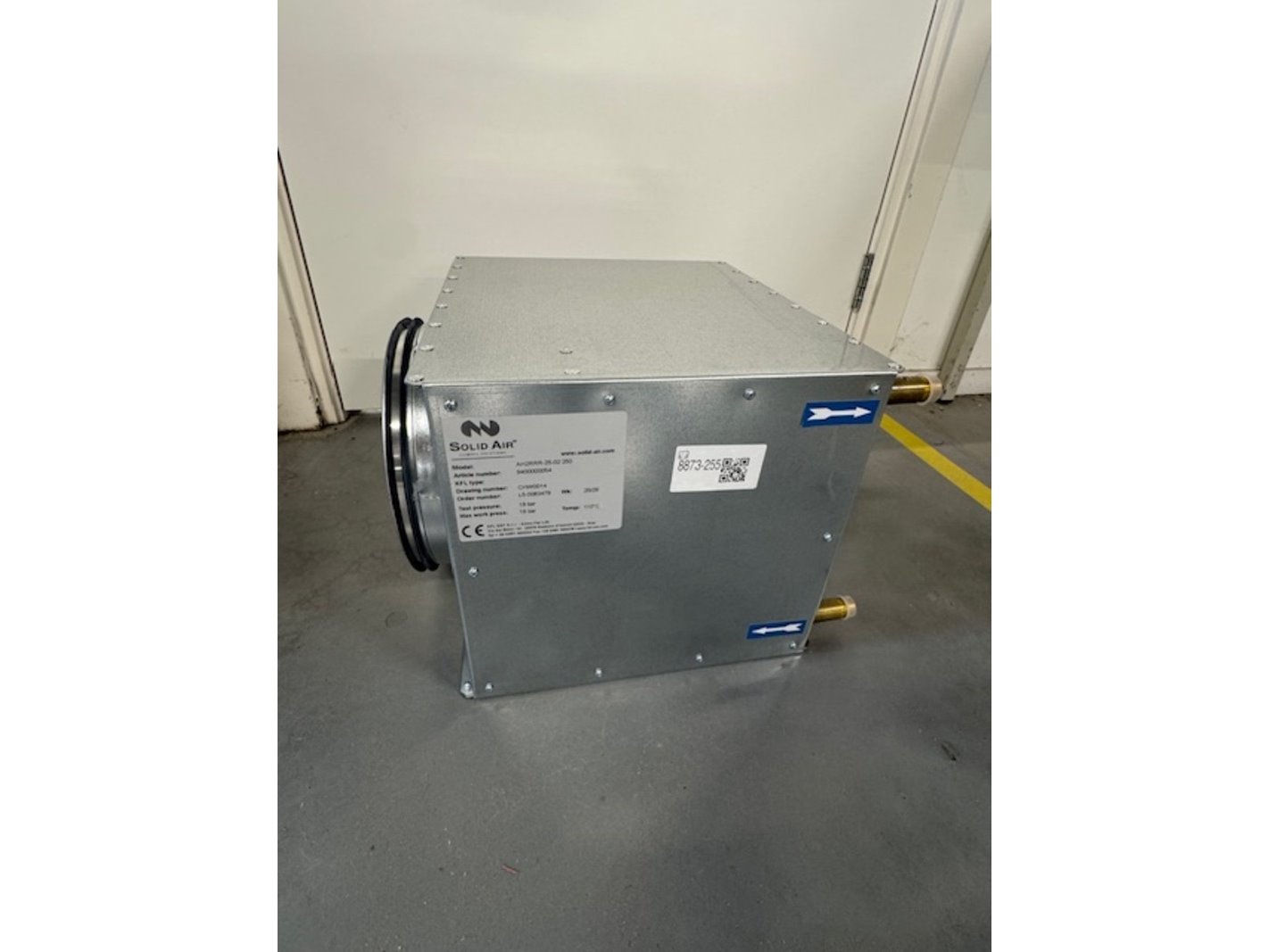 Merk: Solid Air Product: Kanaalverwarmer Afmeting: bxdxh ca. 44x40x32cm Conditie: nieuw Specificaties: De naverwarmer type AH-R is ontworpen om te worden ingebouwd in ronde kanalen en is geschikt voor verschillende temperatuurtrajecten.