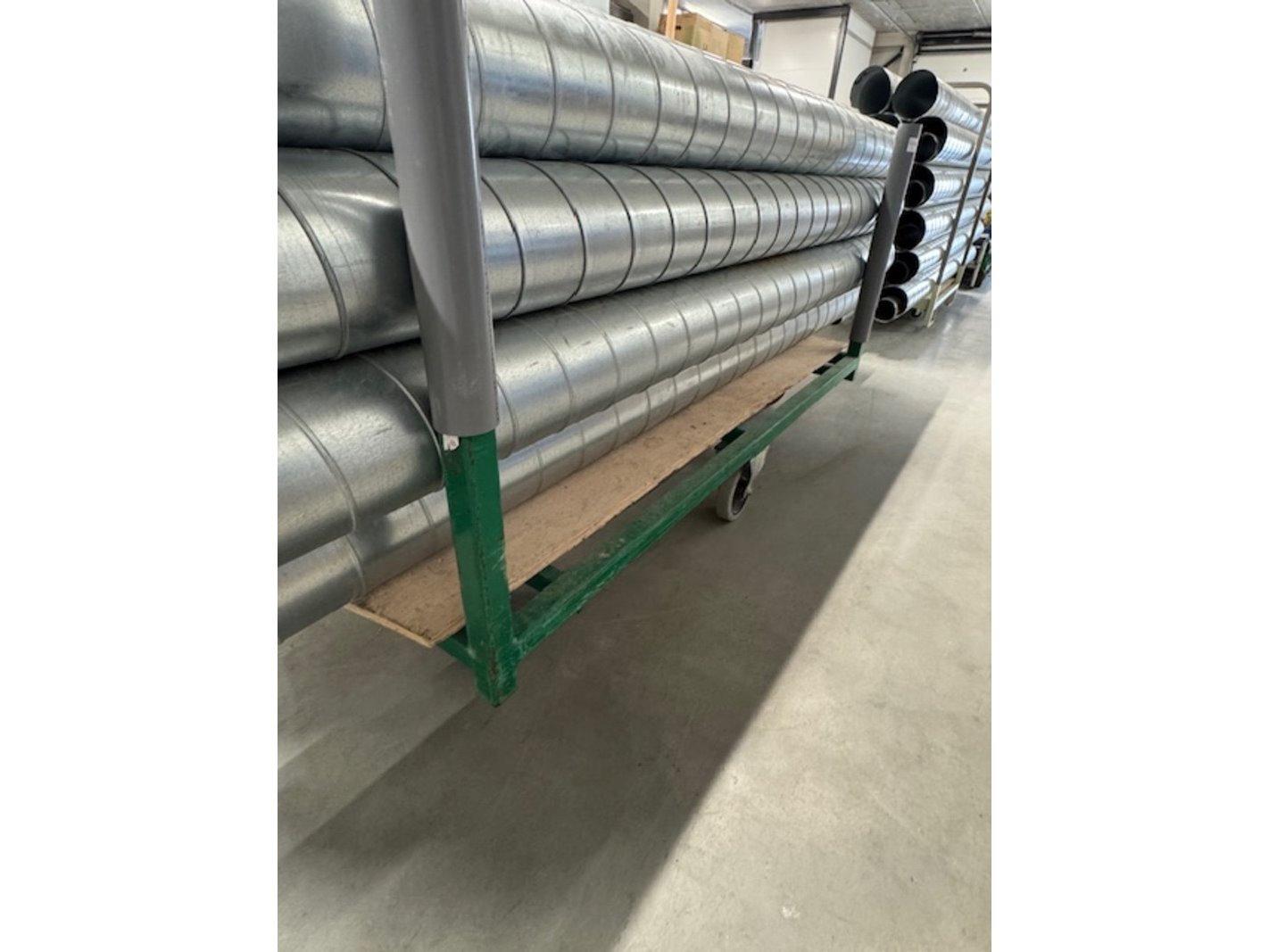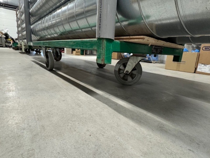 Product: Langmateriaal kar Kleur: groen Materiaal: metaal Afmeting: bxdxh ca. 200x80x90cm