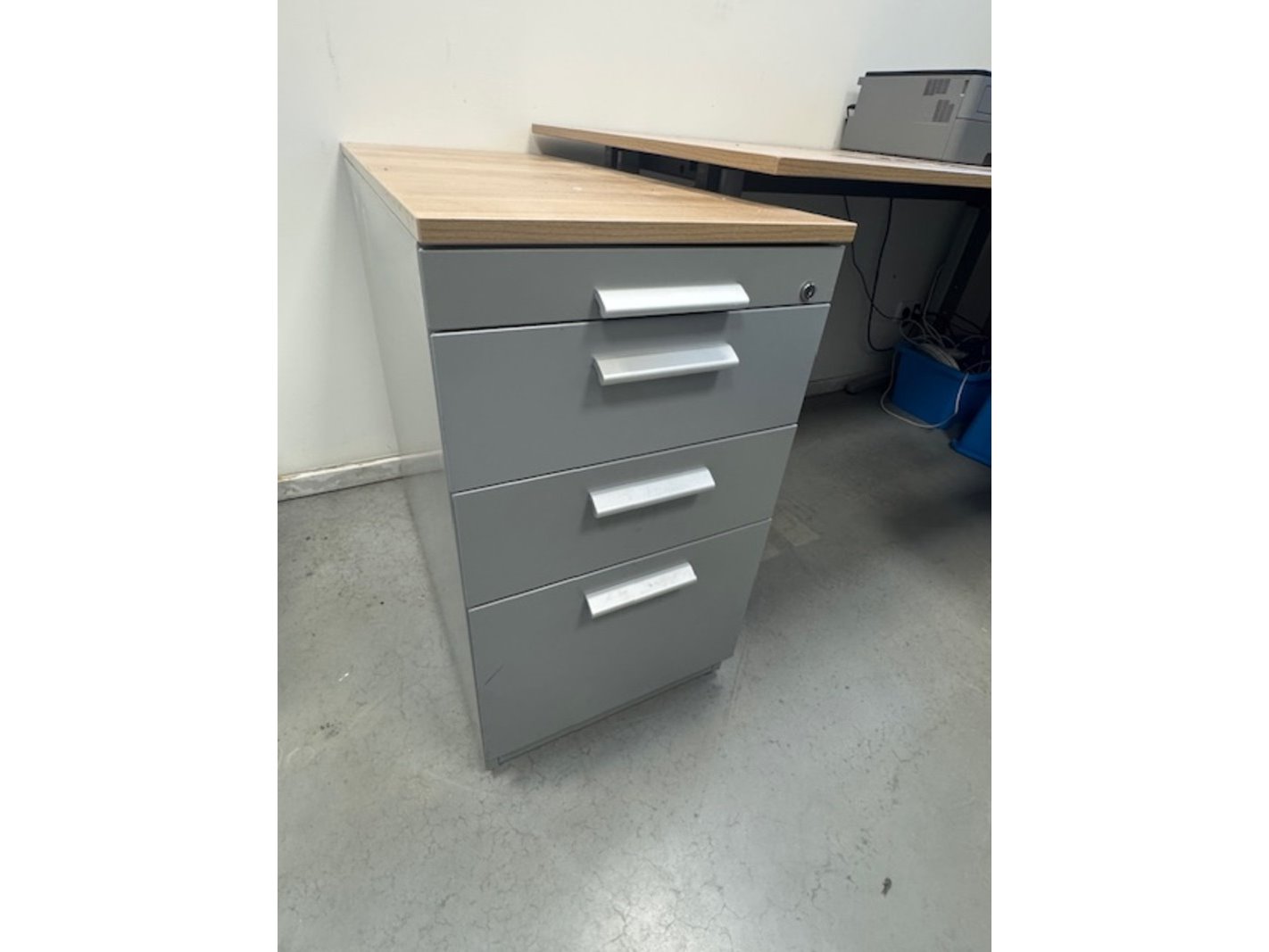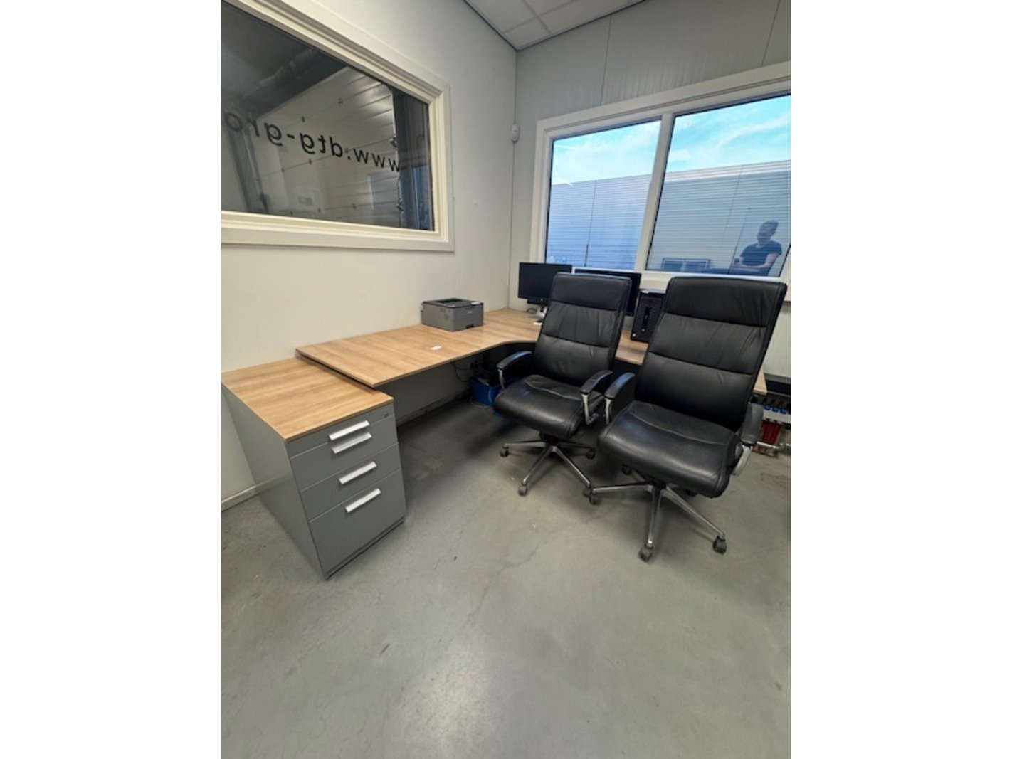 Product: Hoekbureau met 2x bureaustoel Kleur: grijs/eiken Afmeting: bxd ca. 210x227x80cm Specificaties: met ladenblok