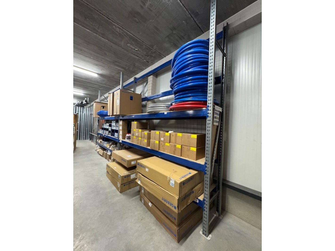 Product: Grootvakstelling Afmeting: bxdxh ca. 680x60x355cm Specificaties: 3x juk, 12x ligger en 6x spaanplaat legbord Let op! Het afhalen van deze kavel is op afspraak.