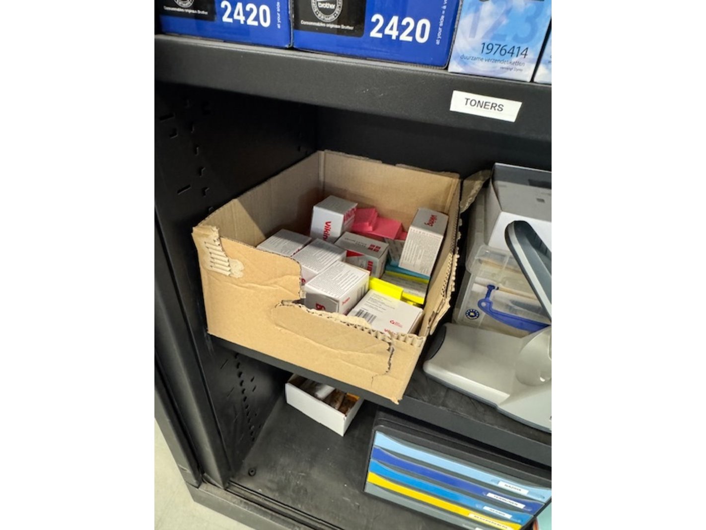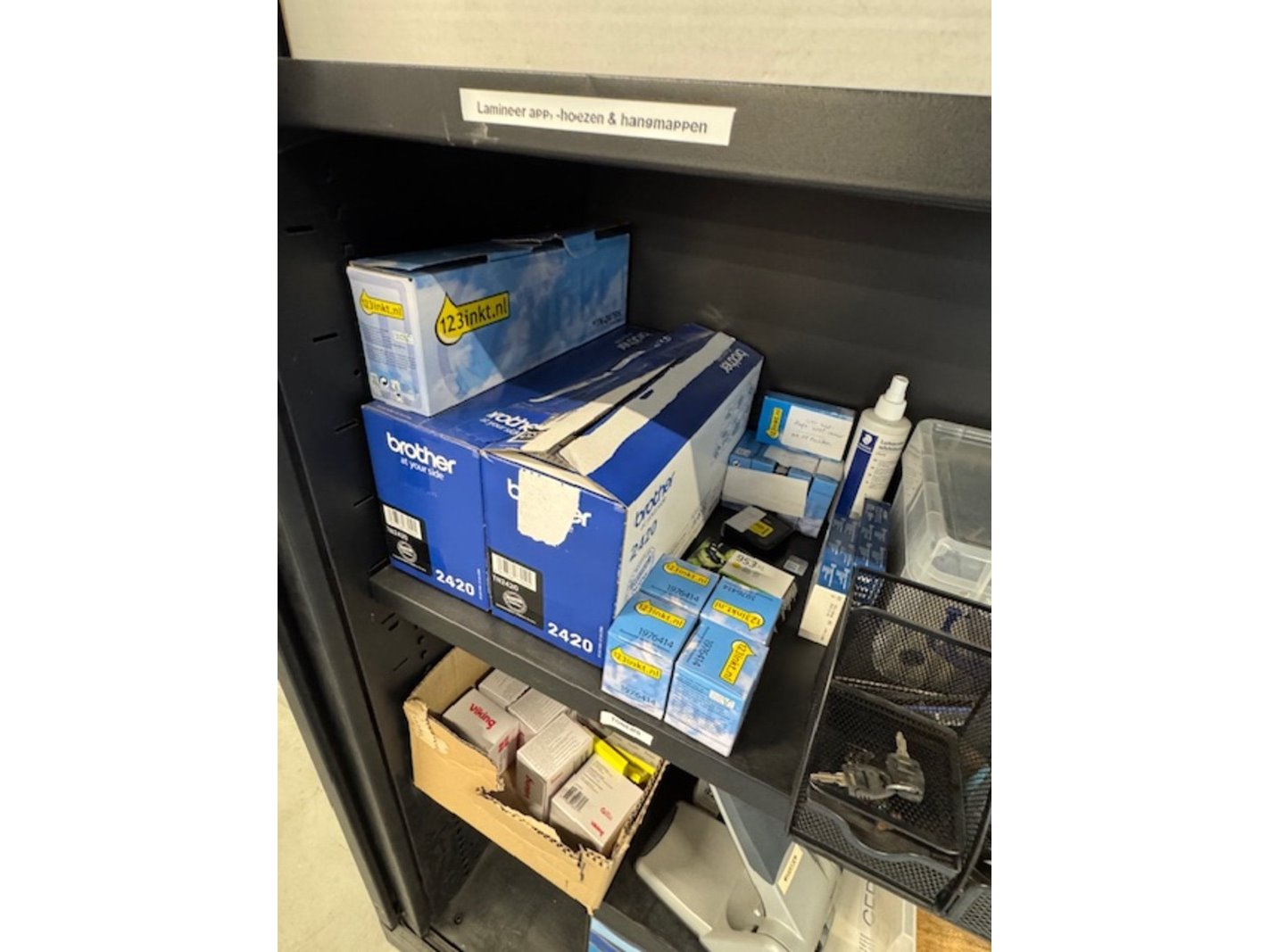 Product: Partij kantoorgerief Specificaties: labelprinters,papier, perforators, nietmachines, toners, cartridges, ordners