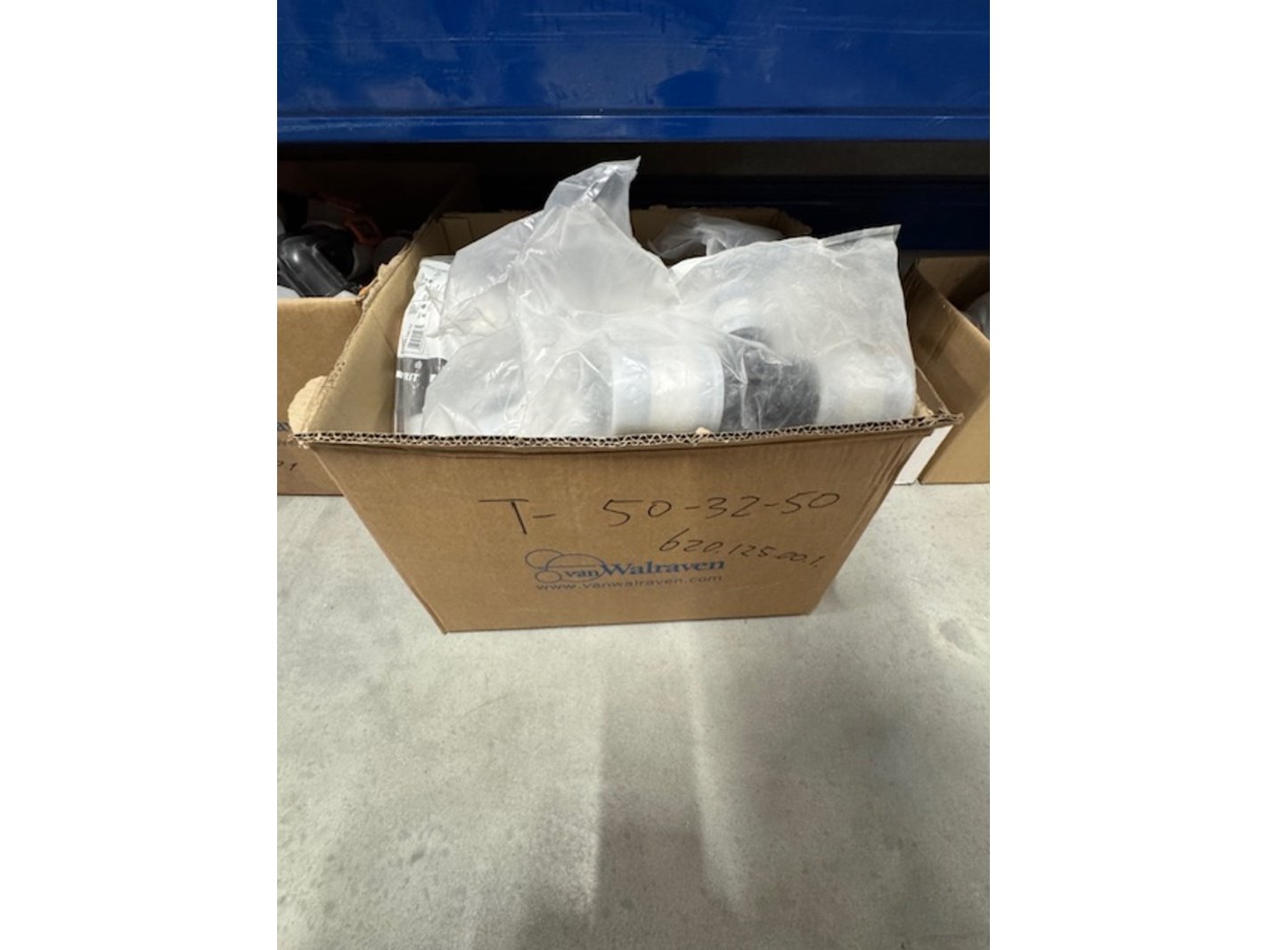 Merk: Geberit Product: Partij perskoppelingen Materiaal: PPSU/koper Afmeting: 50mm diameter Specificaties: diverse uitvoeringen en afmetingen