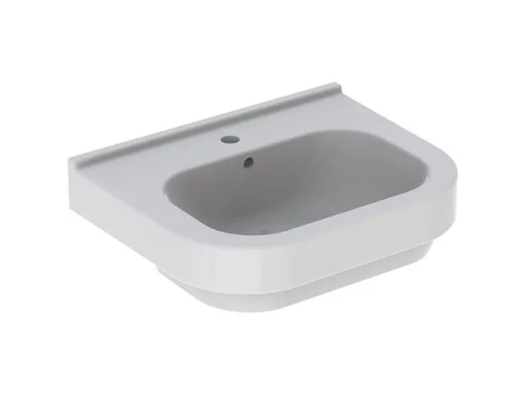 Merk: Geberit Product: Wastafel Kleur: wit Materiaal: keramiek Afmeting: bxd ca. 600x465mm