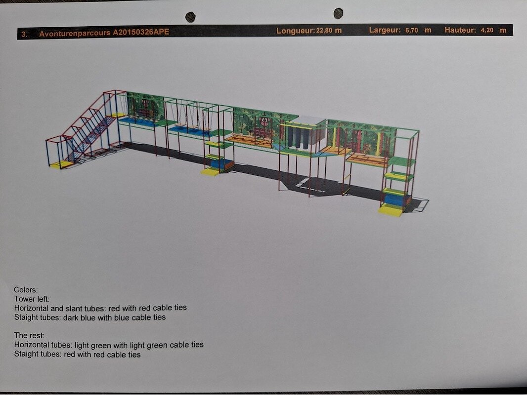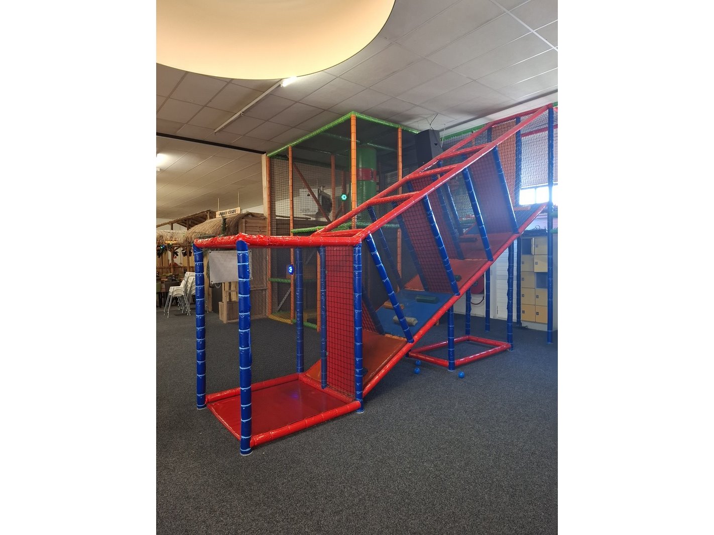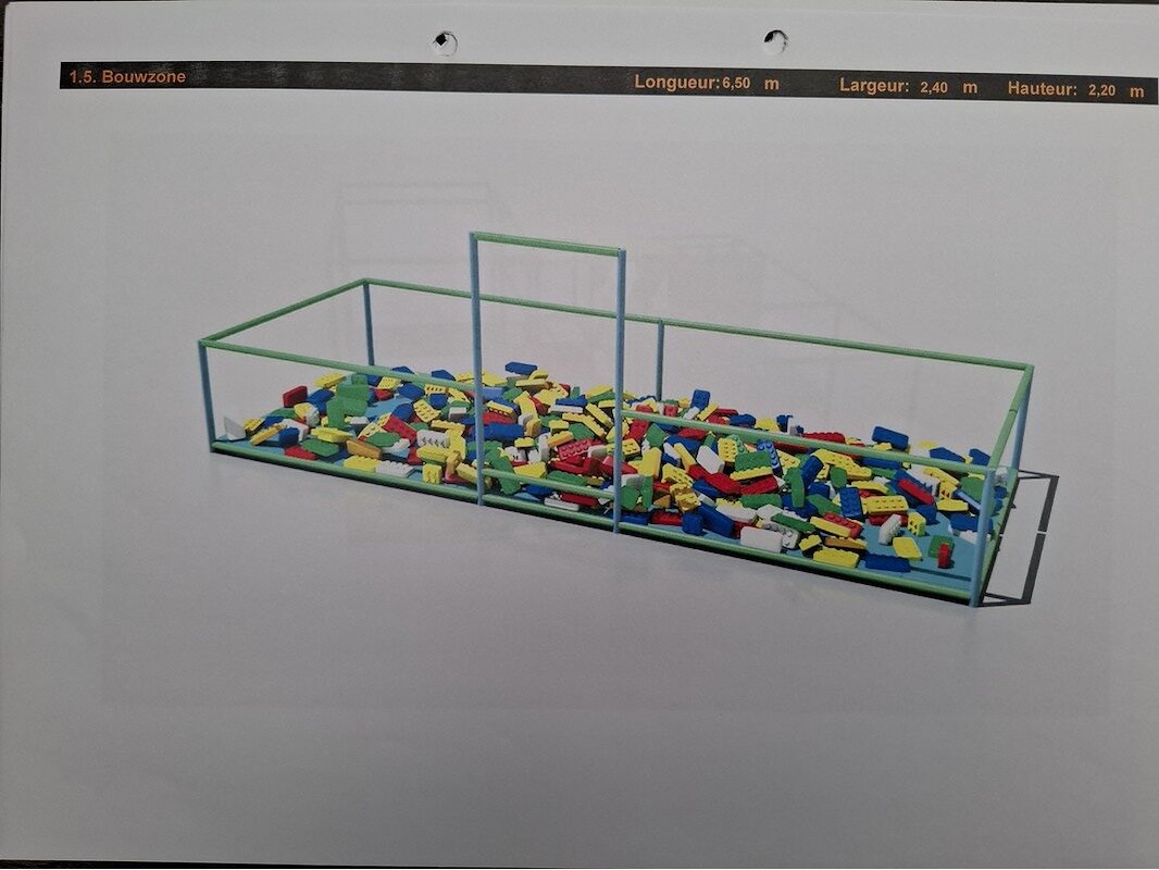 Merk: Leicon Product: Speeltoestel Afmeting: lxbxh ca 26x6,7x4,2mtr Specificaties: met speciale onderdelen o.a. latten zigzag; platformen; bouwzone 8,4x4,8mtr; incl. speelblokken; etc.