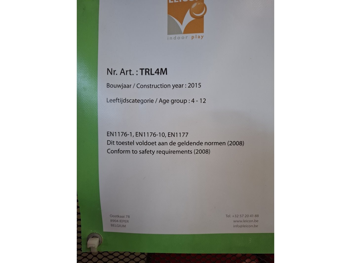 Merk: Leicon Product: Trampoline Afmeting: afm. ca 10x4x3,5mtr Specificaties: bestaande uit 4 trampolines met opgang