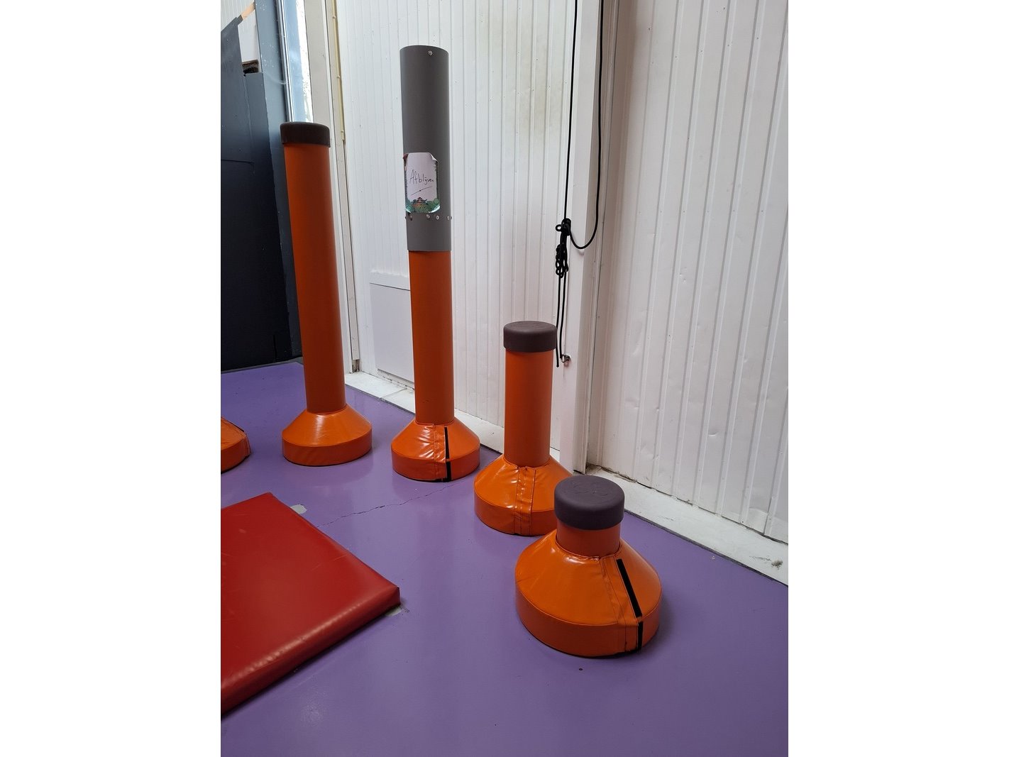 Merk: Tour de balance Product: Klimtoestel Specificaties: incl. Thru Blue systeem (valbeveiliging); bestaande uit: 10 staanders van 50 tot 500cm hoogte
